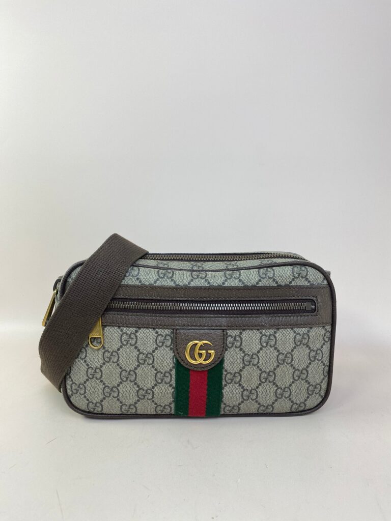 Gucci Bicolor GG Monogram Web Double Pocket Belt Bag