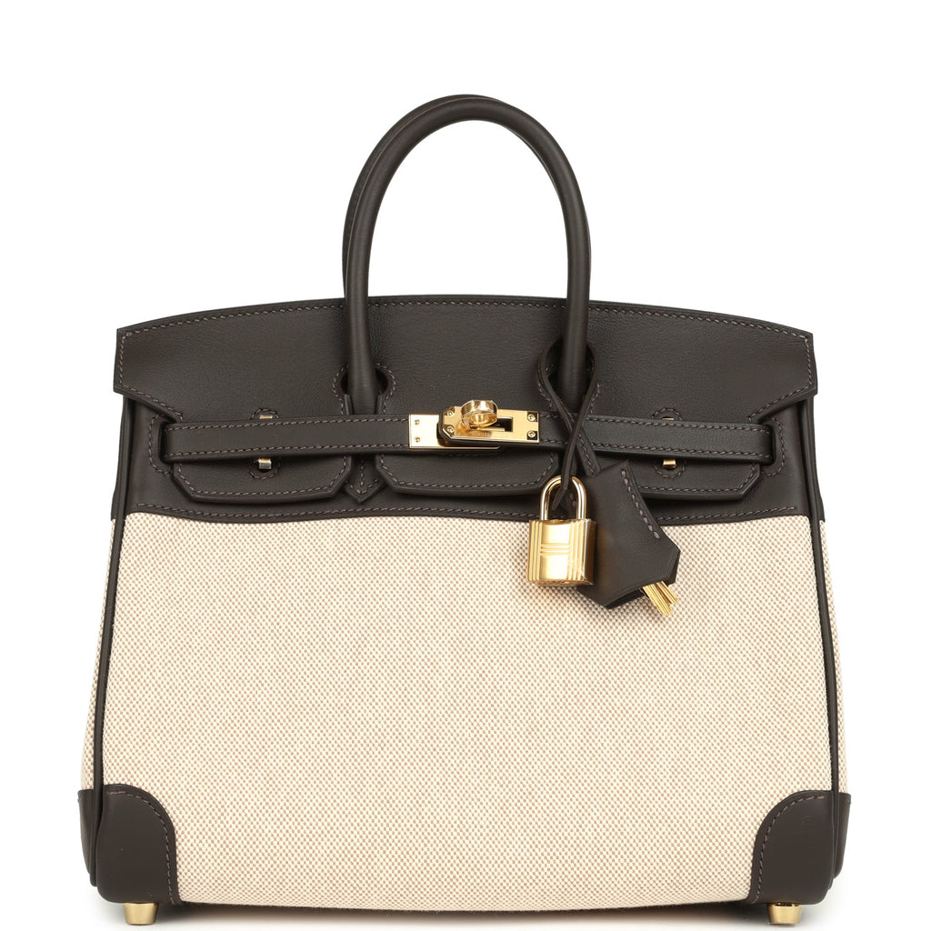 Hermes Birkin 25 Ecru and Beige Toile H Canvas and Bai Brun Swift Gold Hardware