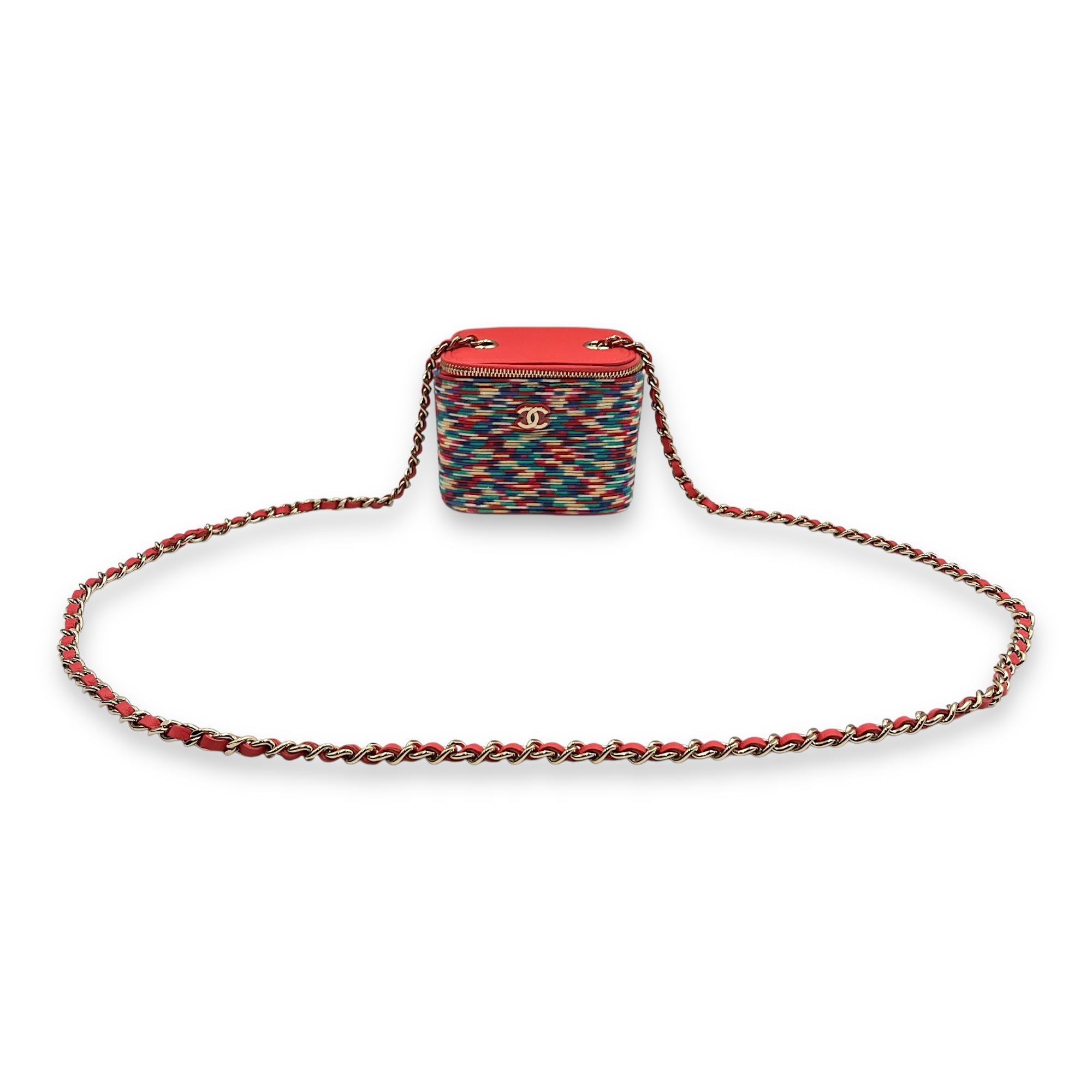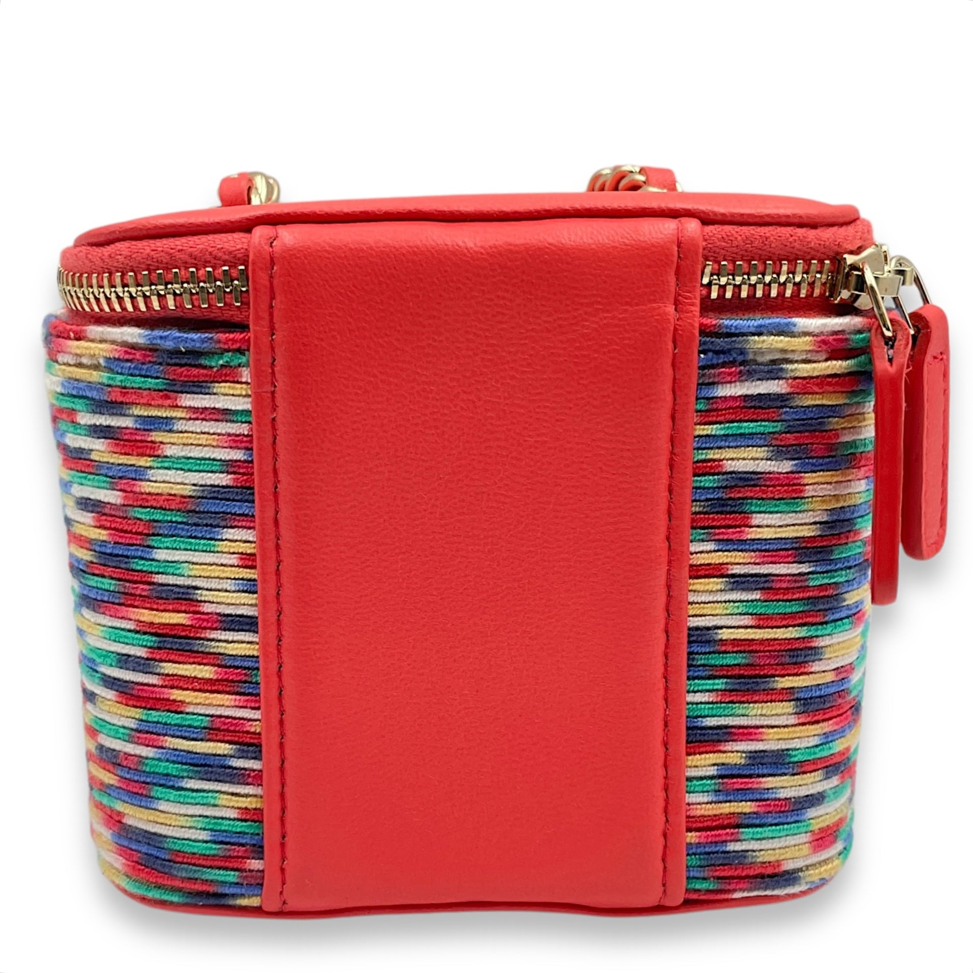 21P Vanity case with multi colour embroidered Red Clutch in Lambskin, Gold hardware