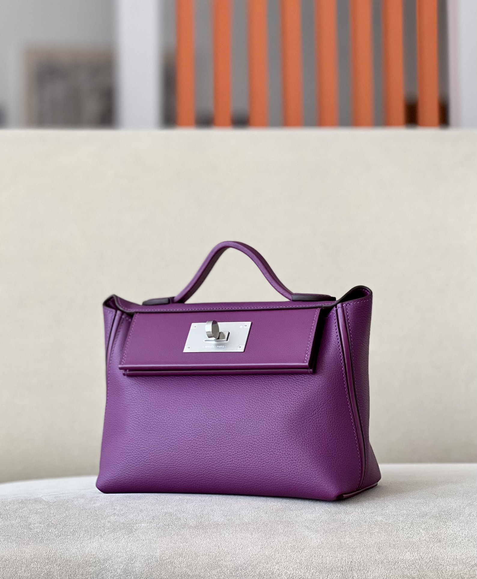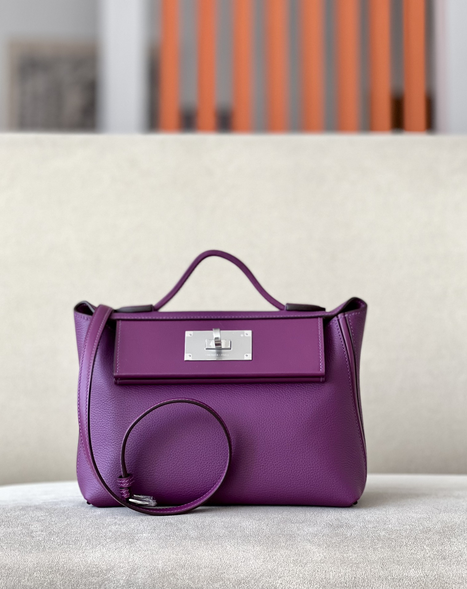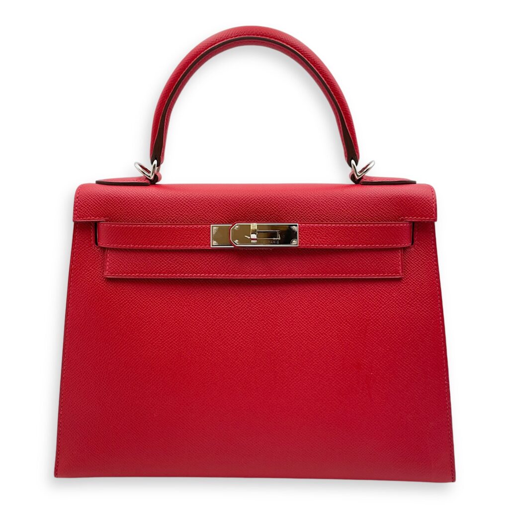 Includes ribbon, care booklet, dust bag, paper bag and box.