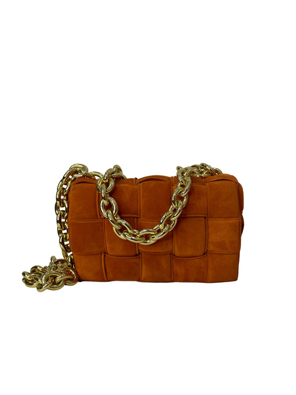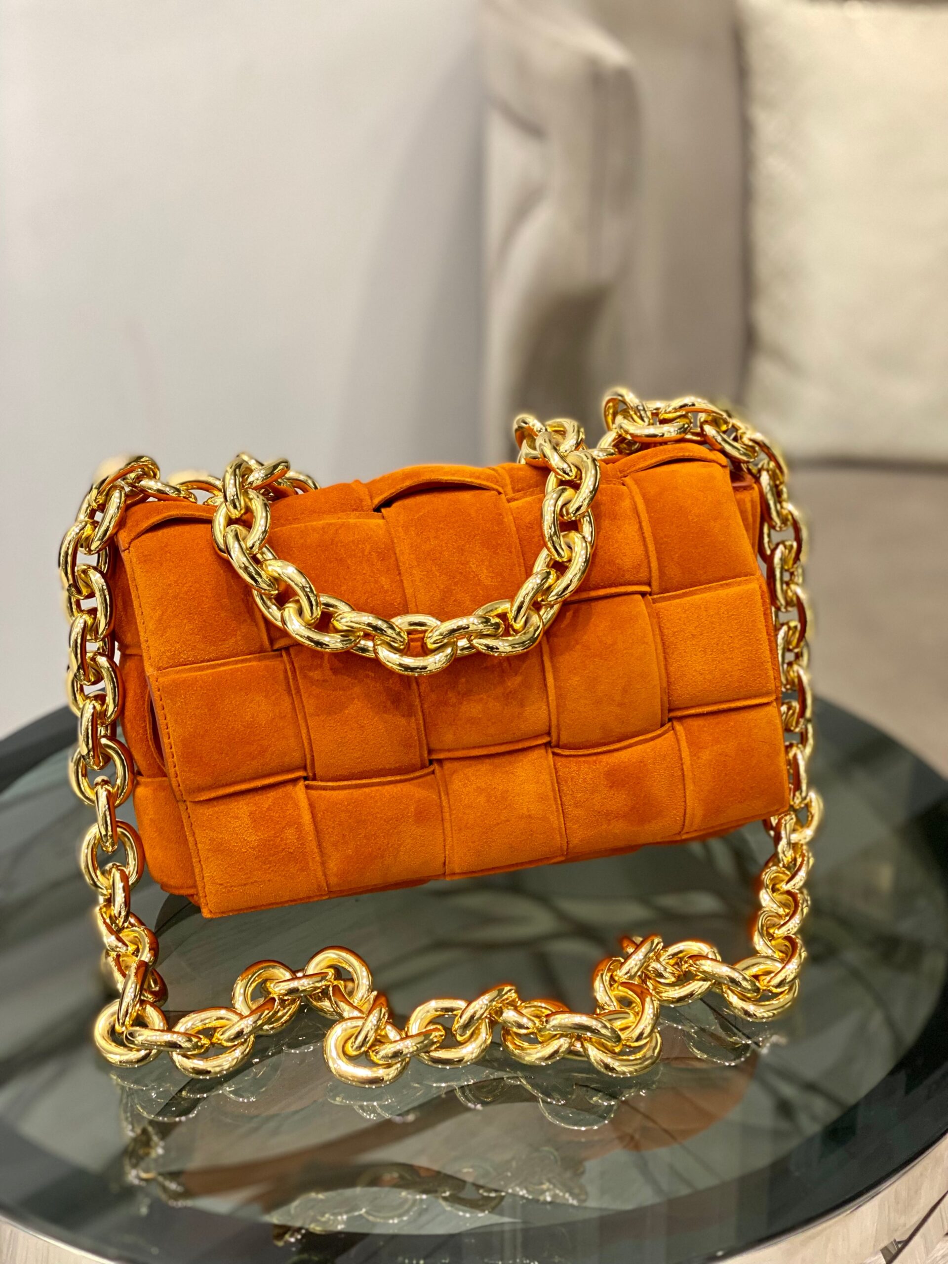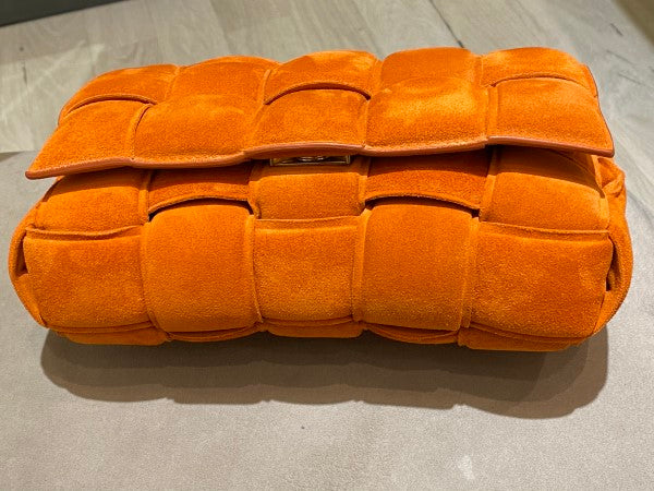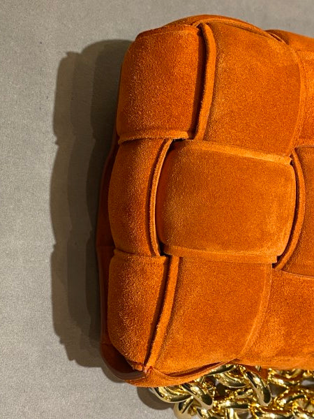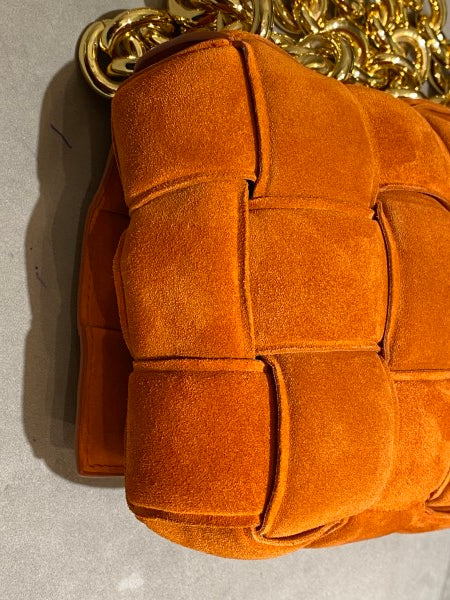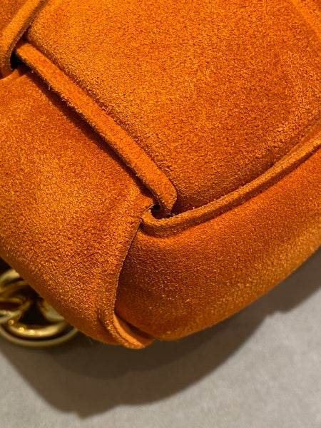 Bottega Veneta Orange Suede Chain Cassette Crossbody Bag