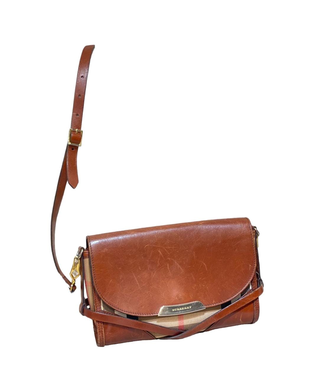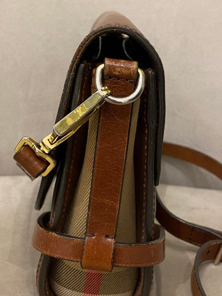Burberry Brown House Check Bridle Abbott Crossbody Bag