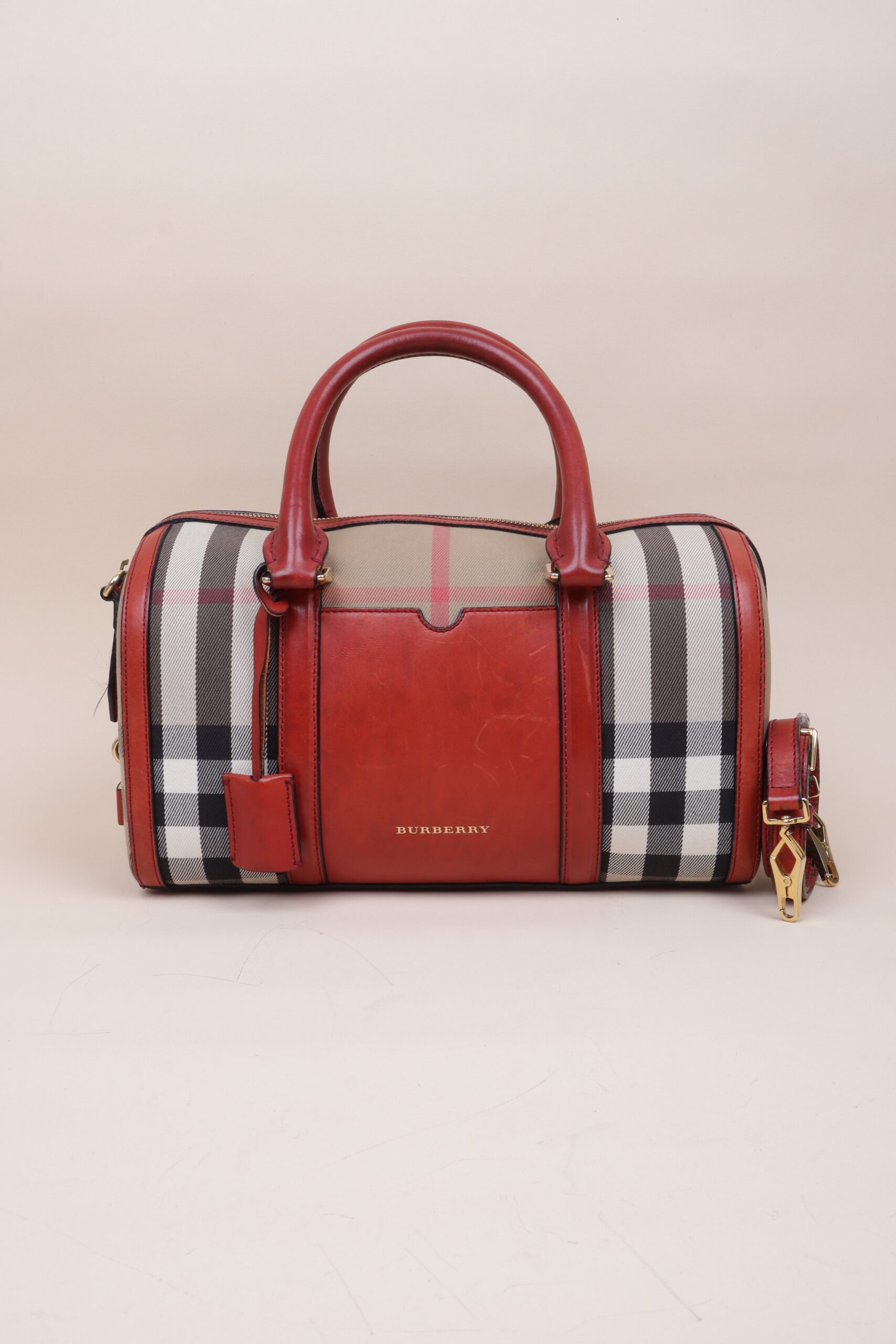 Burberry House Check Red Alchester Bowling Medium Tote Bag with Strap