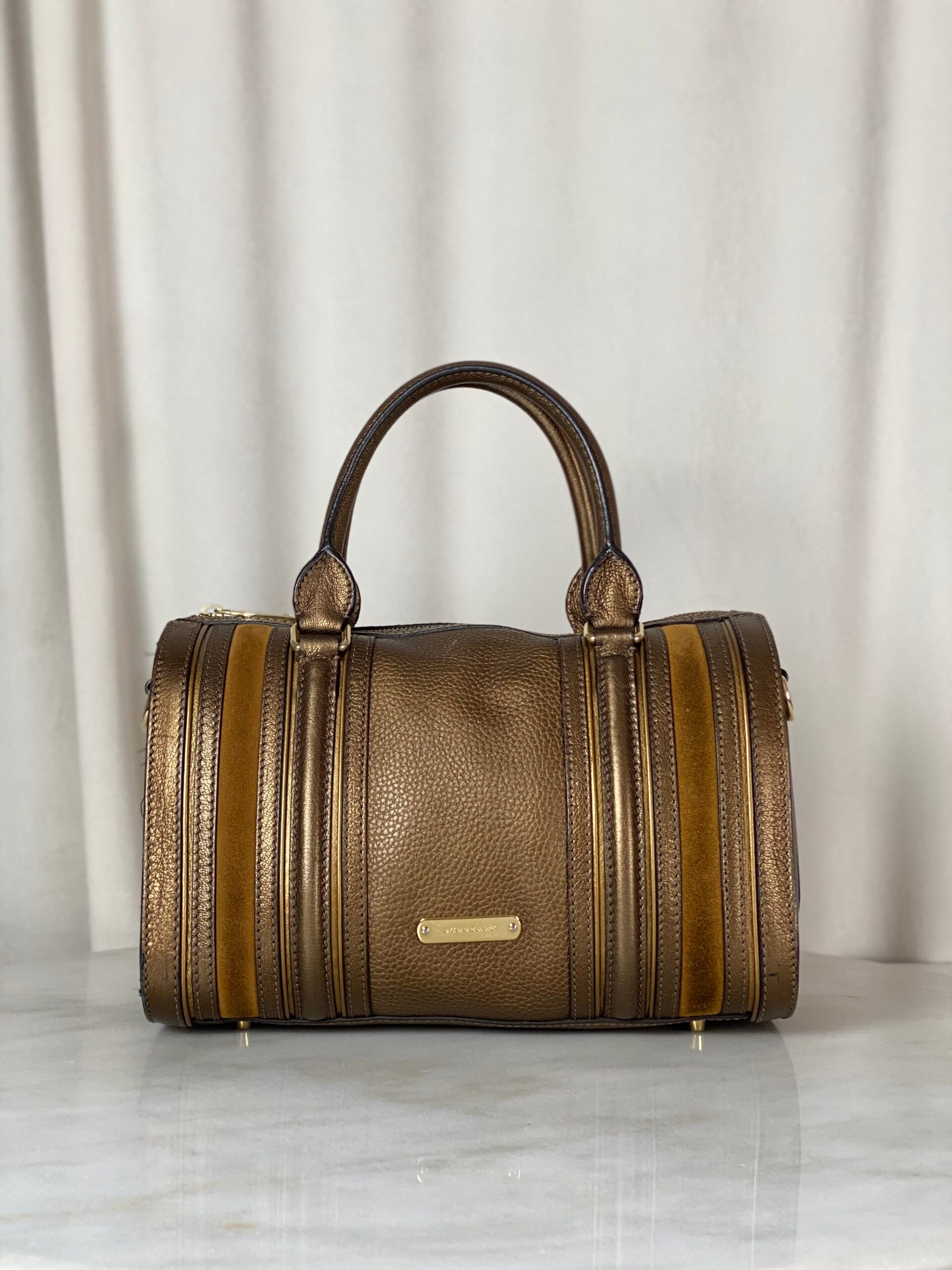 Burberry Metallic Camel Bowling Alchester Boston Medium Bag