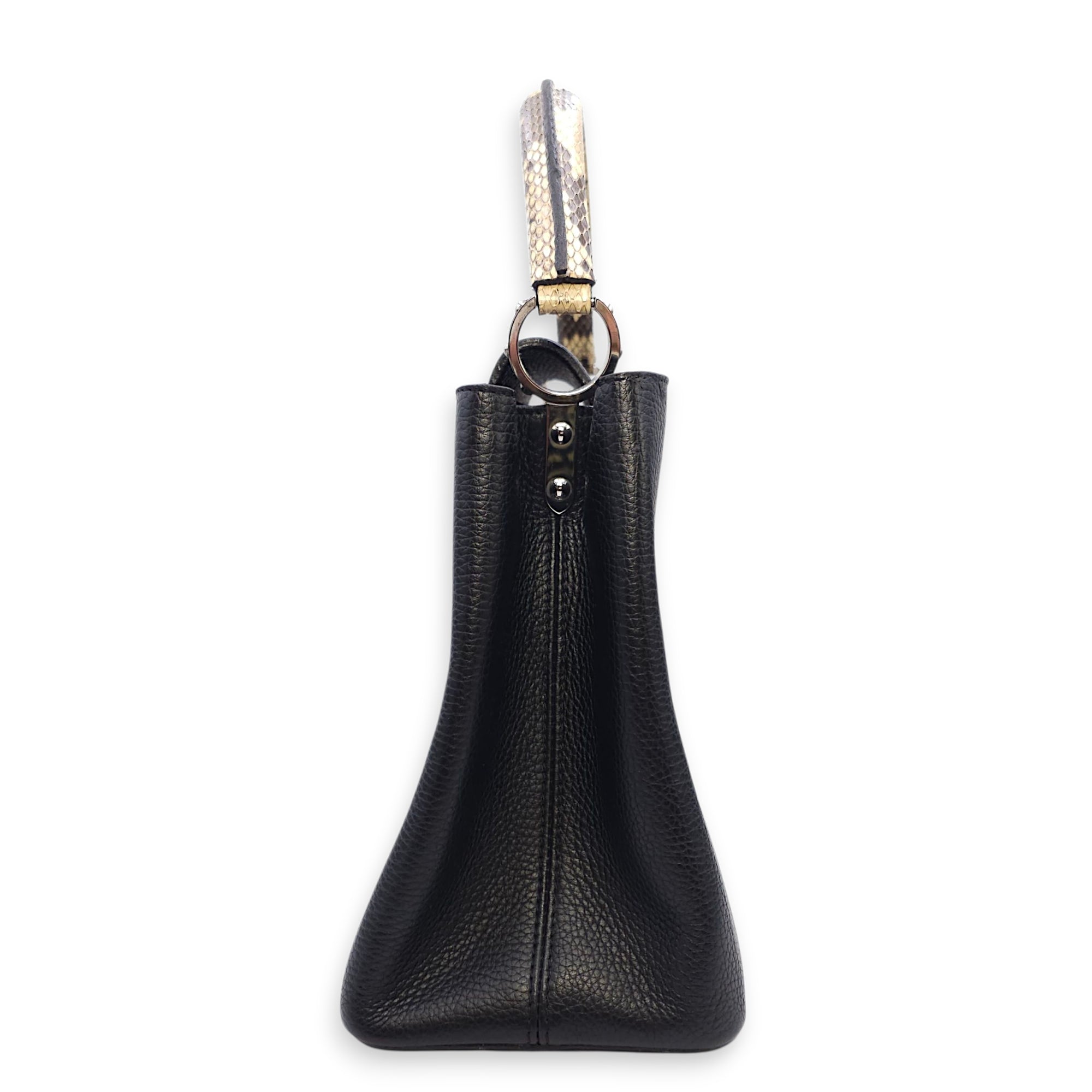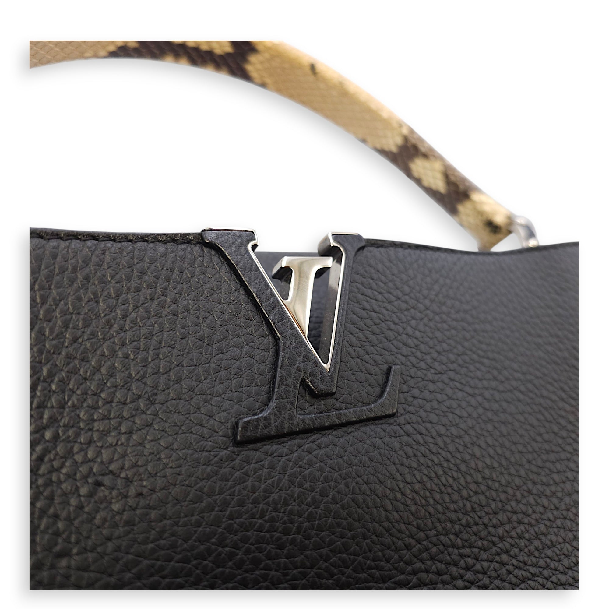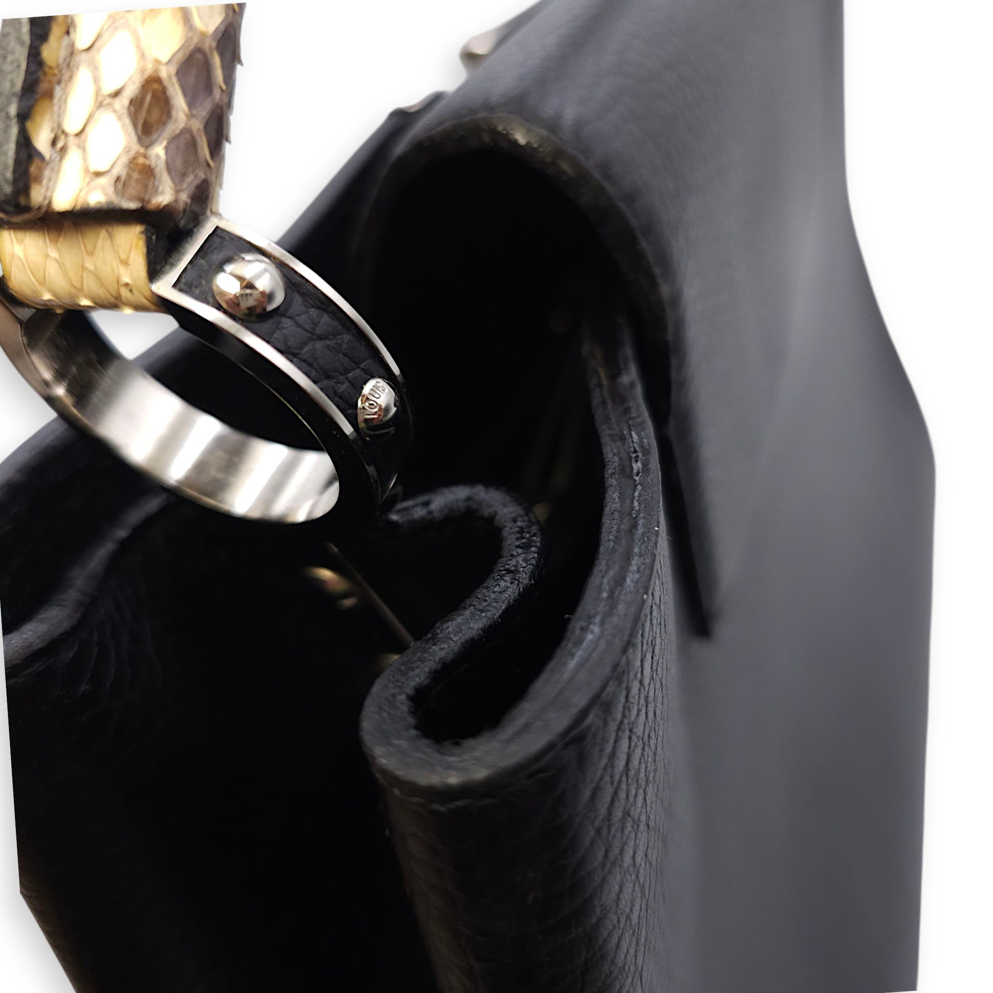 Capucines Black Crossbody in Python Leather, Silver hardware