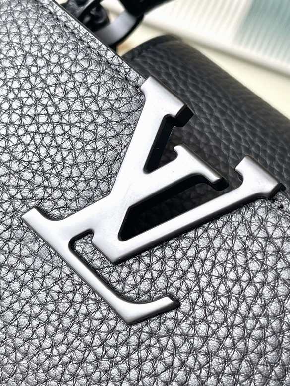 The Capucines East-West Mini, a chic reinterpretation of an iconic House piece. Crafted from sumptuous matte calfskin and adorned with sleek matte hardware, this spacious handbag boasts a modern east-west silhouette, offering a fresh twist on classic sophistication. The detachable leather strap adds versatility, allowing for various styling options to suit any occasion.