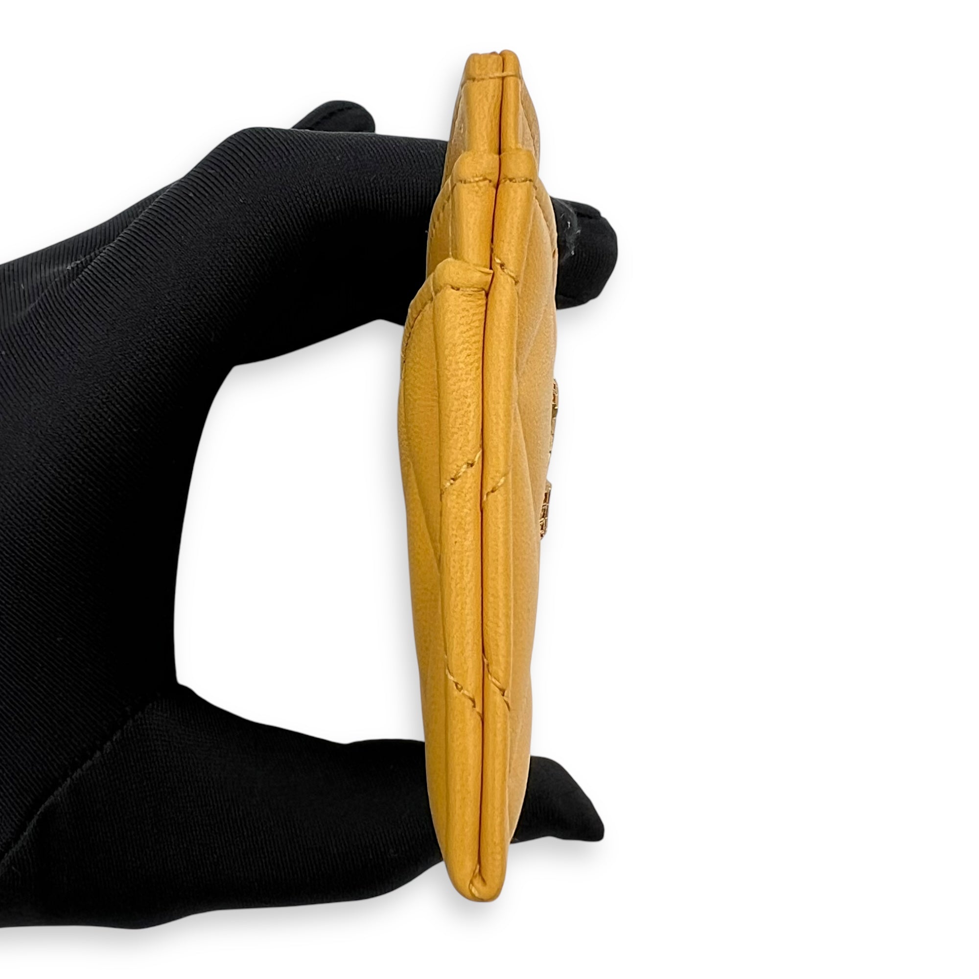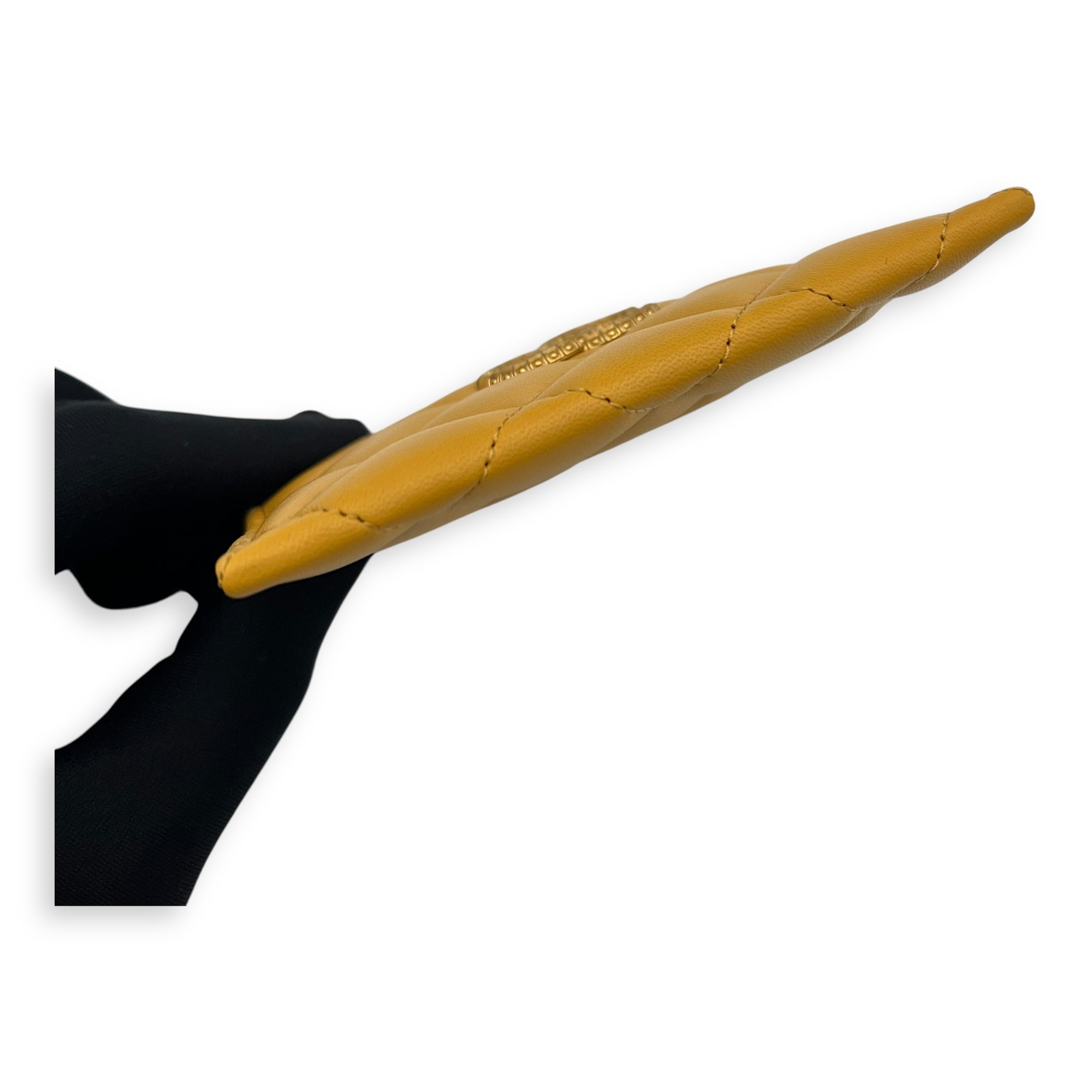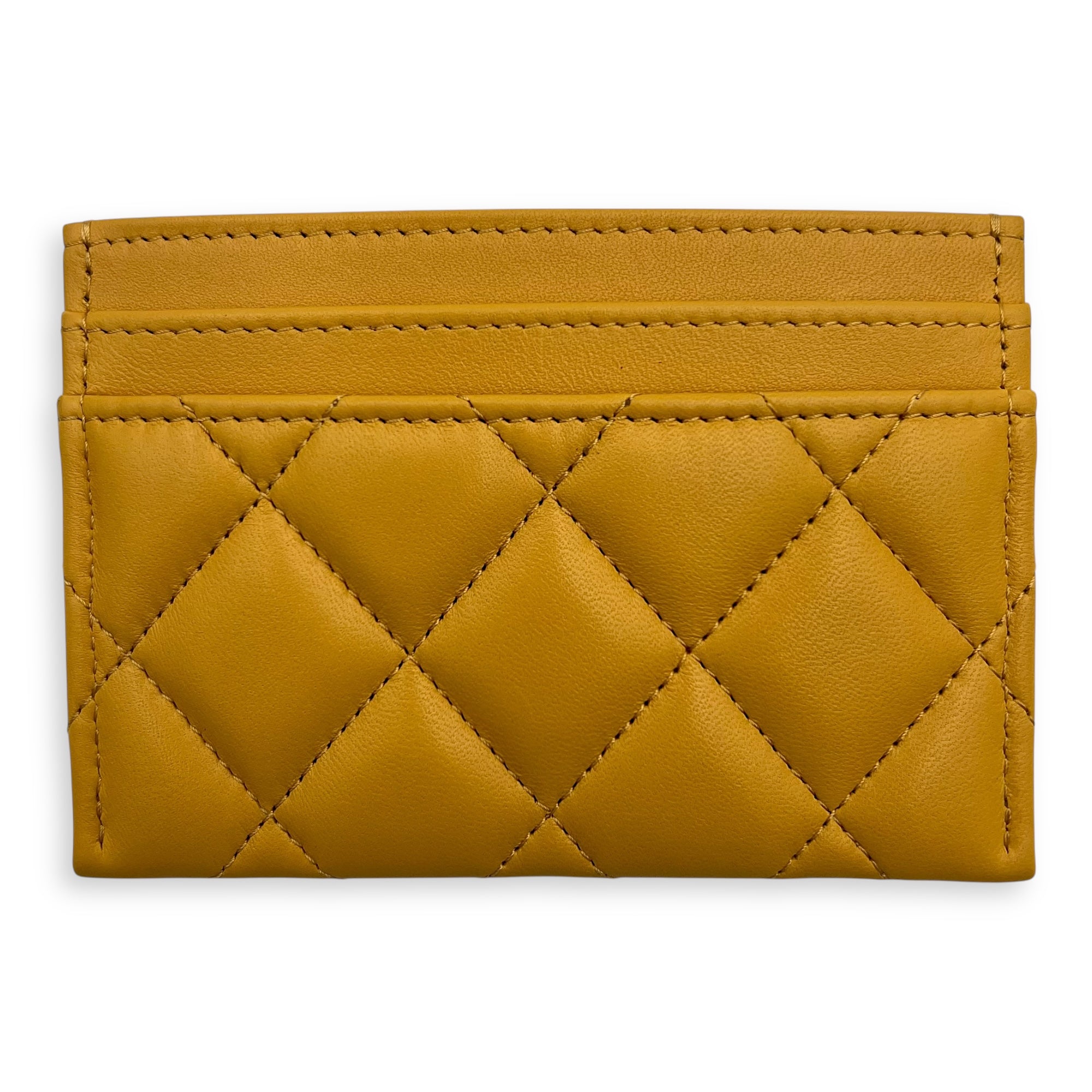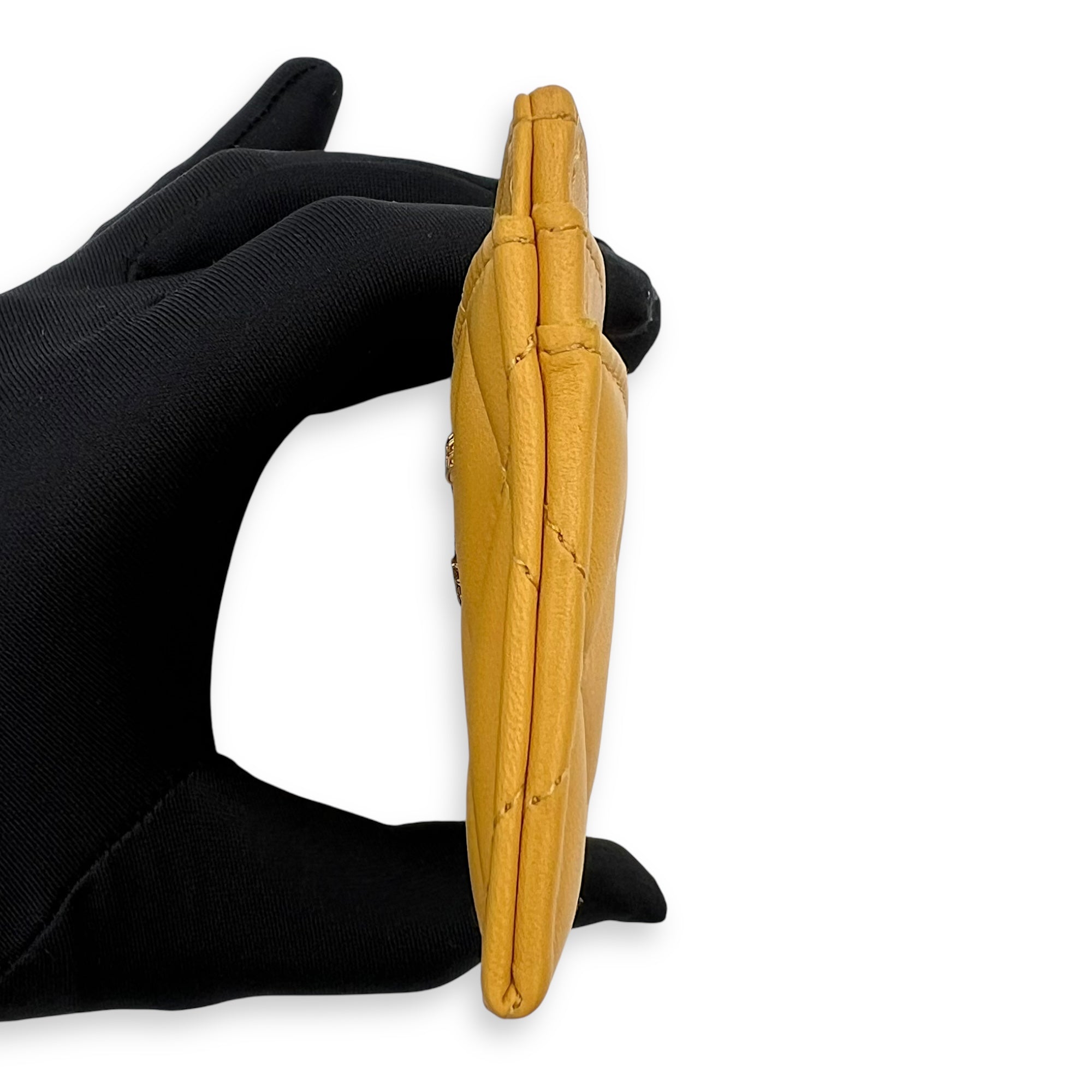 CC Yellow Card Holder in Lambskin, Gold hardware
