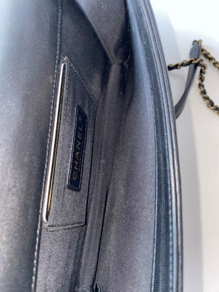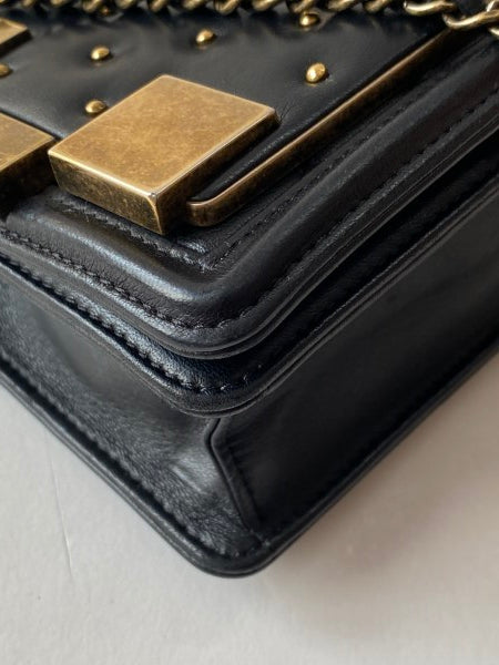 Chanel Black Quilted Horizontal Boy Brick Studded Flap Bag