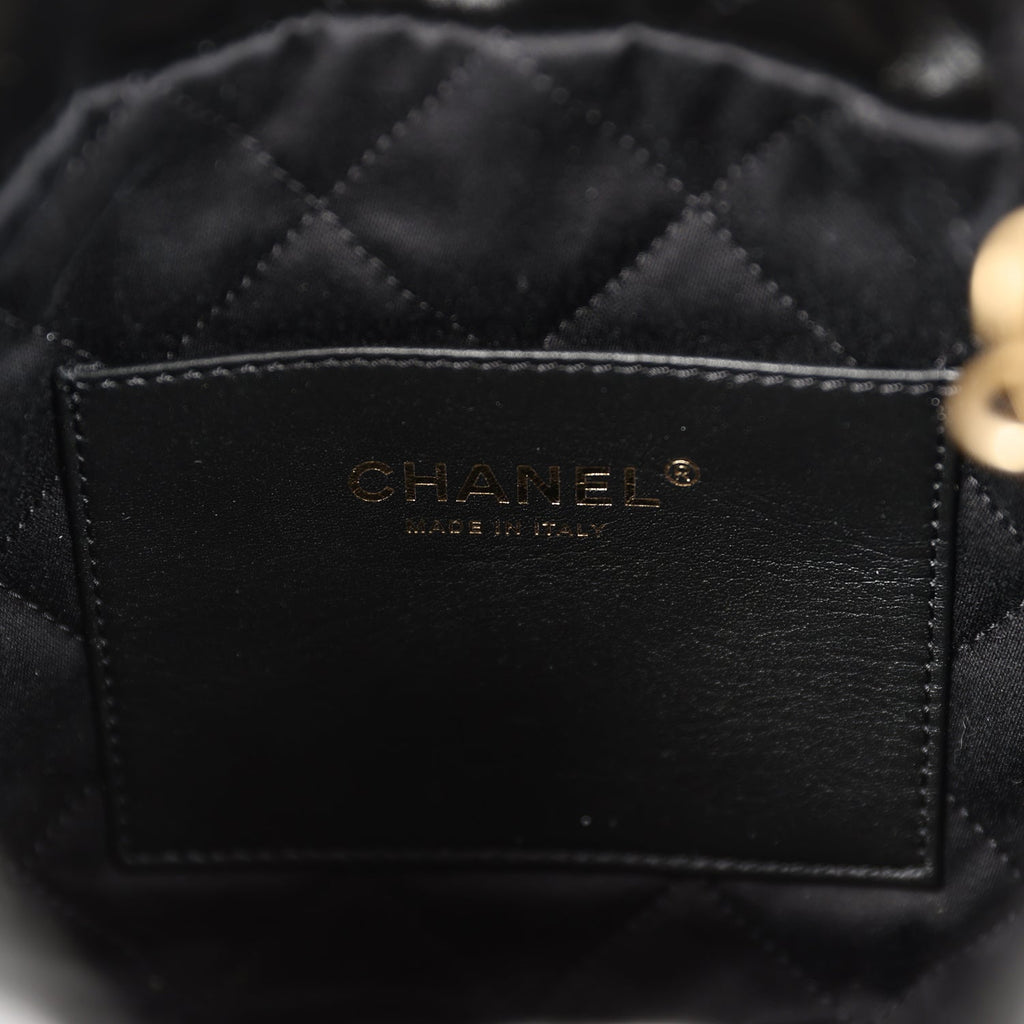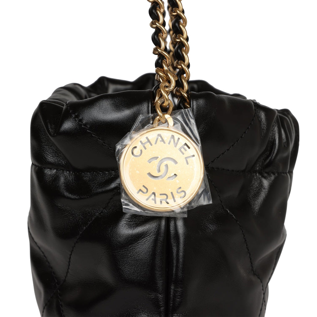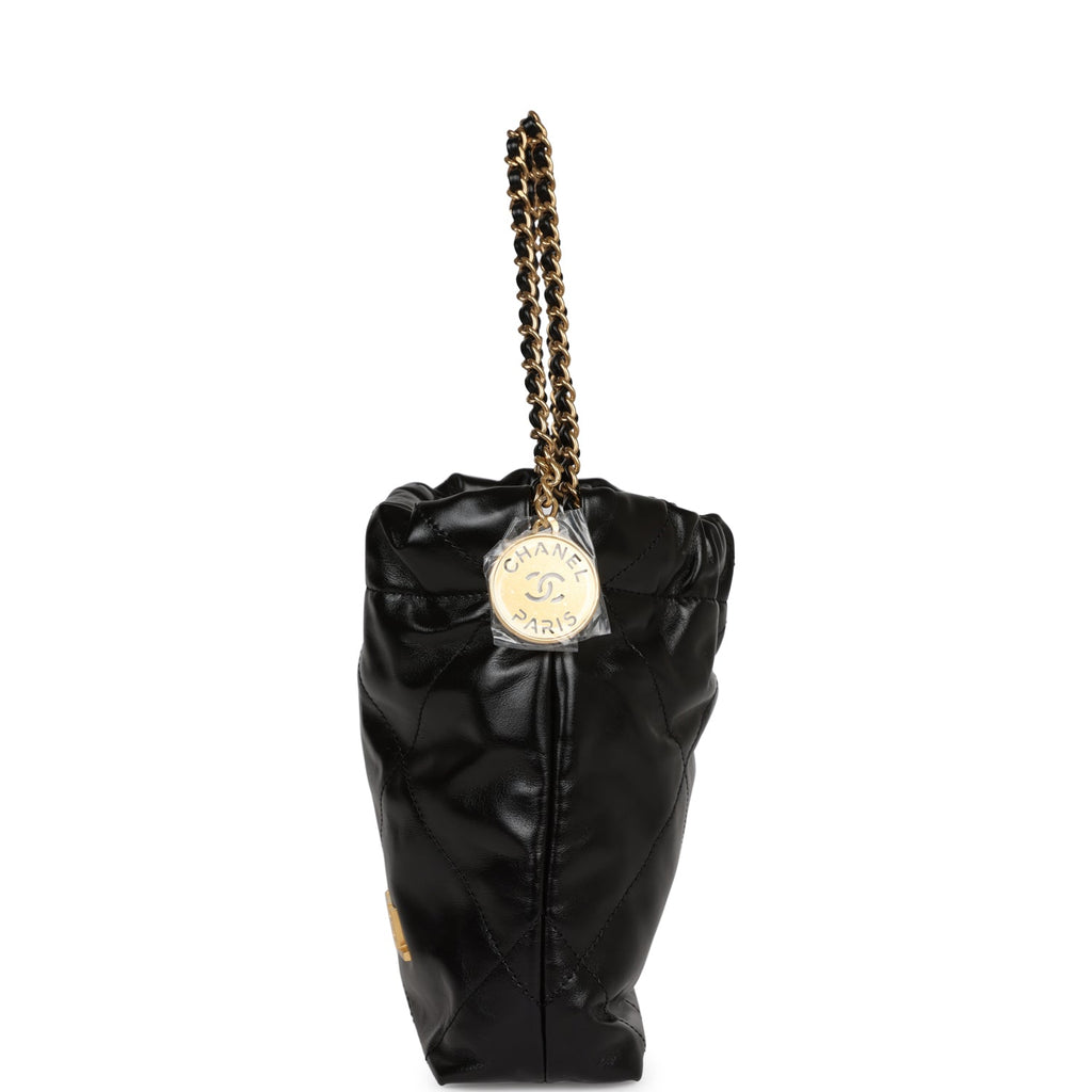Chanel Mini 22 Bag Black Calfskin Gold Hardware Shop for an authentic Chanel Mini 22 bag in Black calfskin leather with gold tone hardware in new and never worn condition at Madison Avenue Couture.
