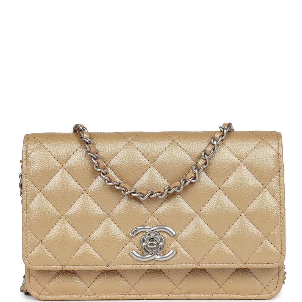 Chanel Wallet On Chain WOC Beige Iridescent Caviar Silver Hardware Shop for an authentic Chanel Wallet On Chain WOC Beige Iridescent Caviar with silver hardware in new and never worn condition at Madison Avenue Couture.
