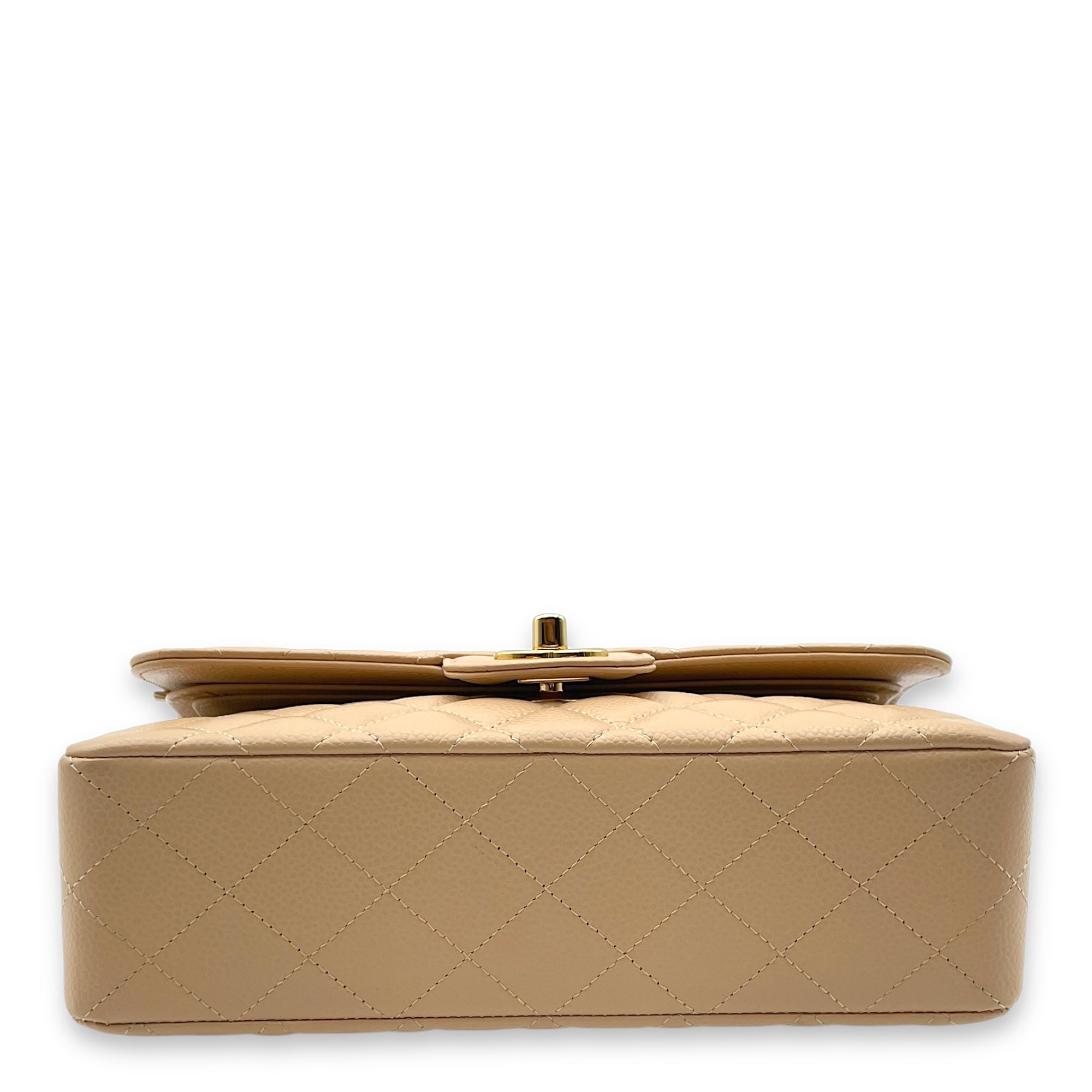 Classic Double Flap Small Beige Clair Shoulder Bag in Caviar Leather, Gold hardware