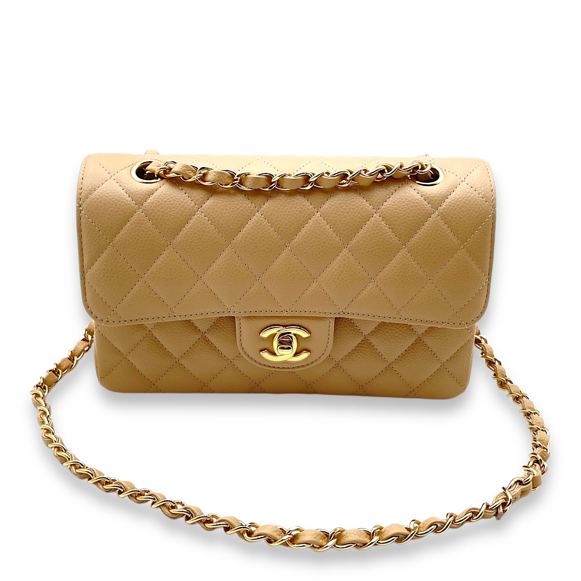 Be the first to review “Classic Double Flap Small Beige Clair Shoulder Bag in Caviar Leather, Gold hardware”