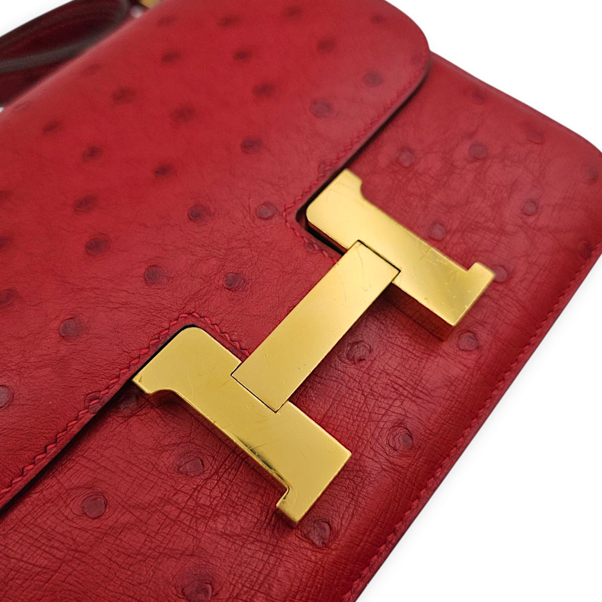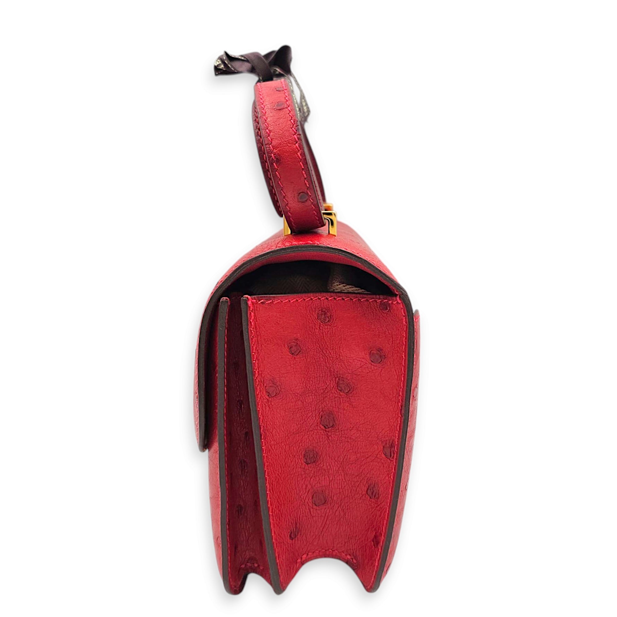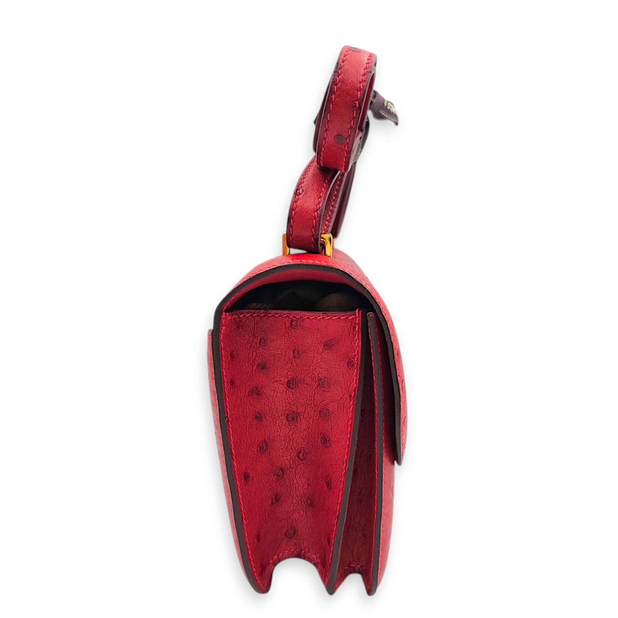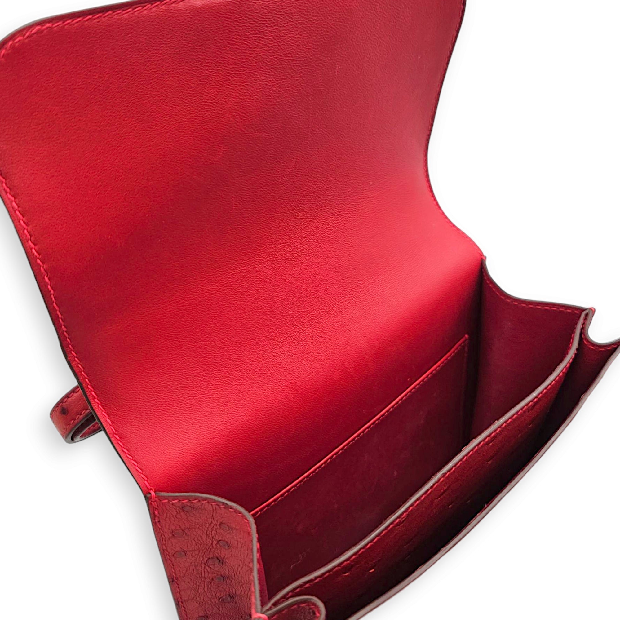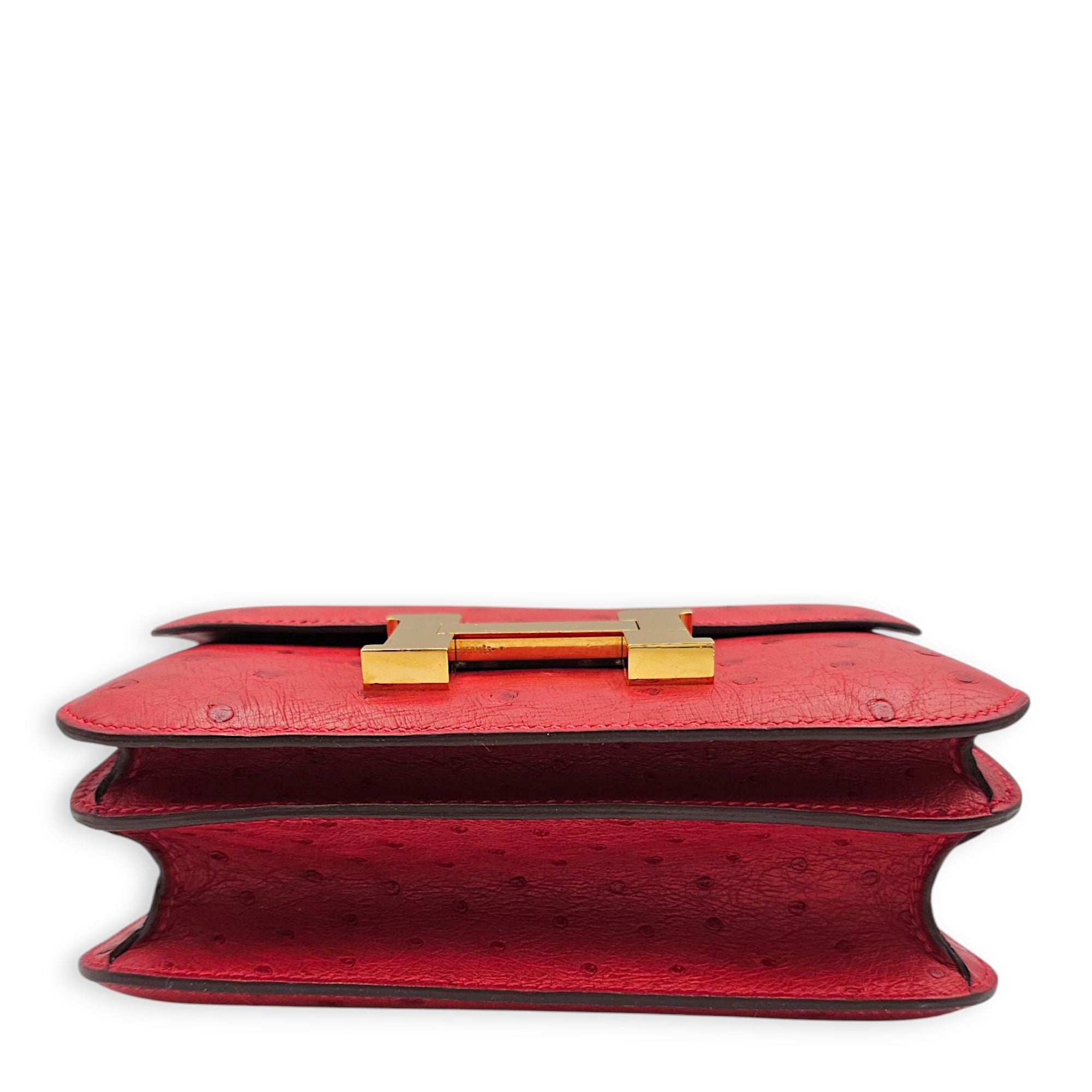 Constance 18 Rouge Vif in Ostrich, Gold hardware