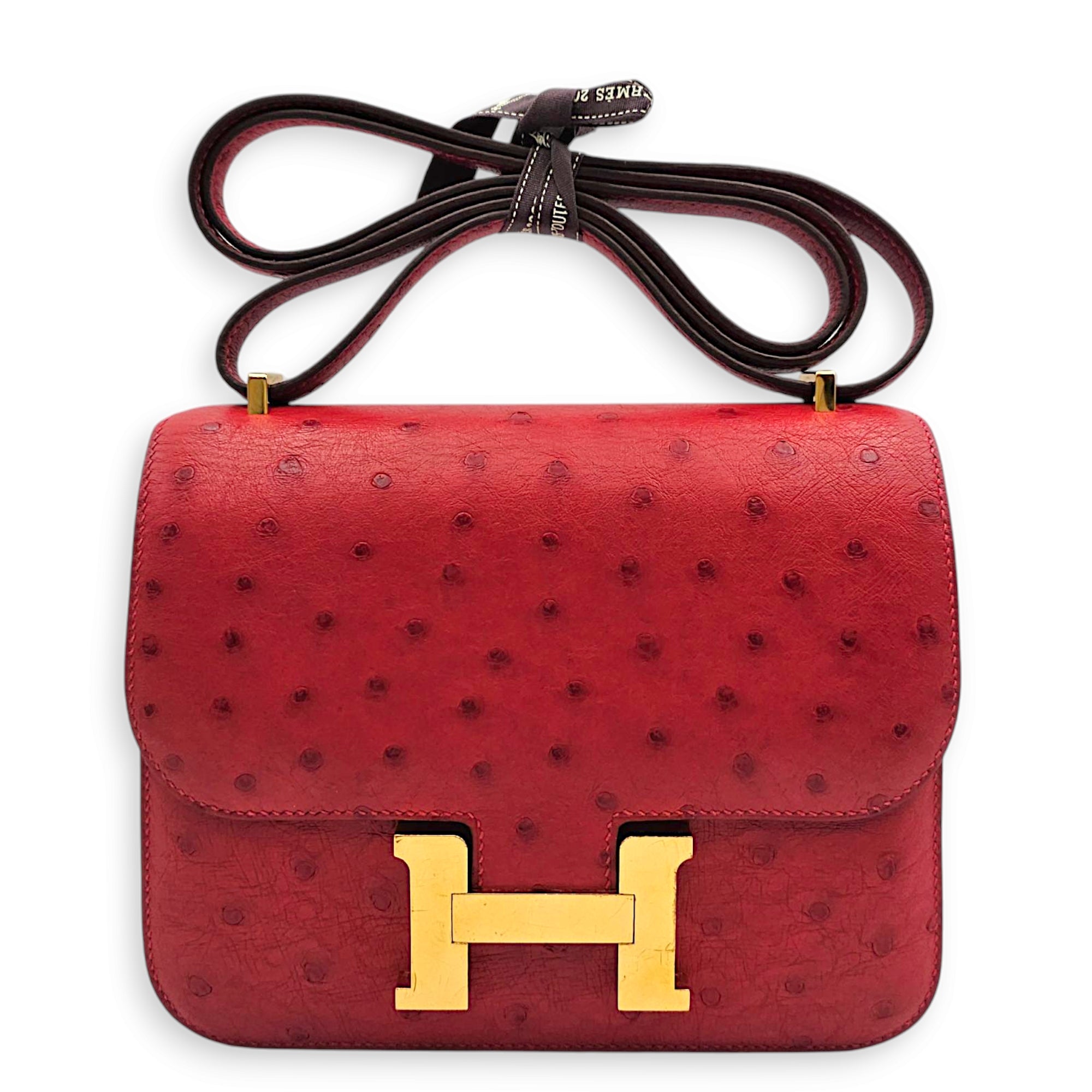 Be the first to review “Constance 18 Rouge Vif in Ostrich, Gold hardware”