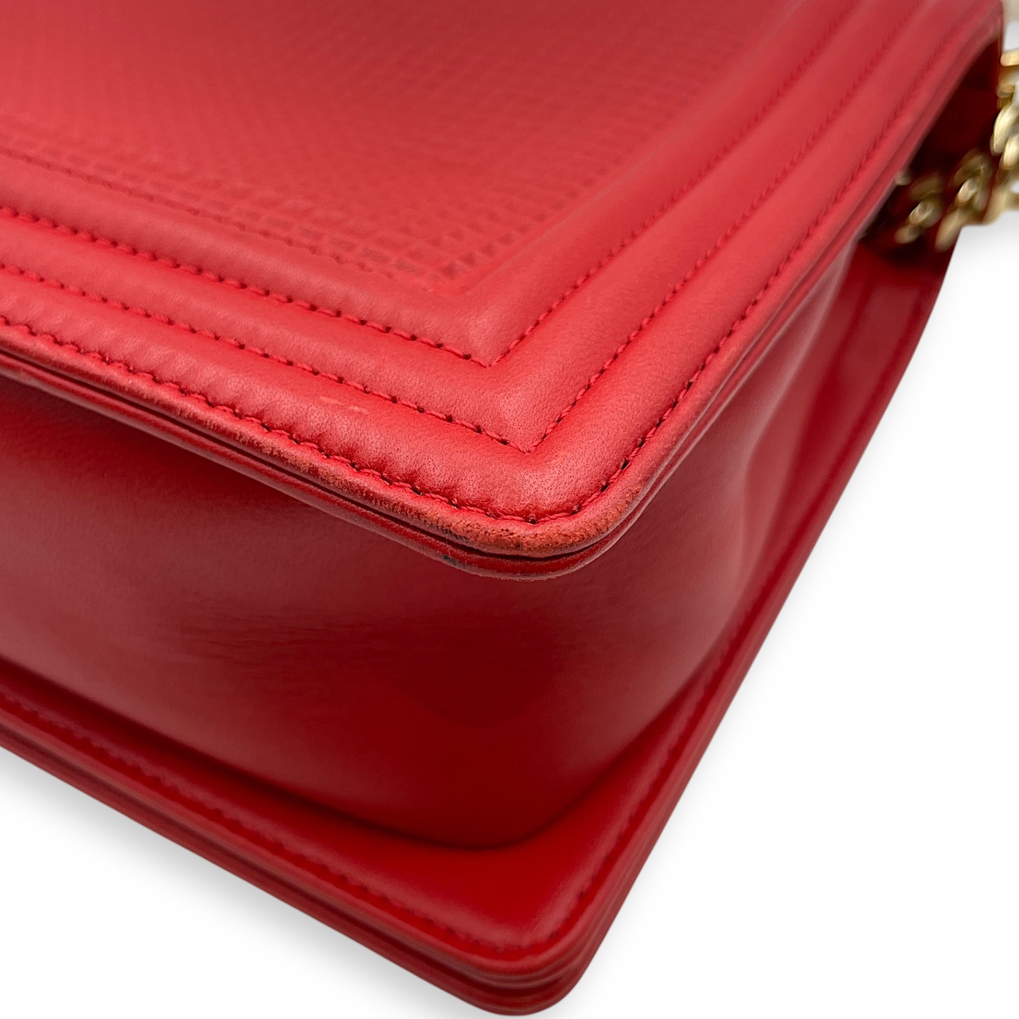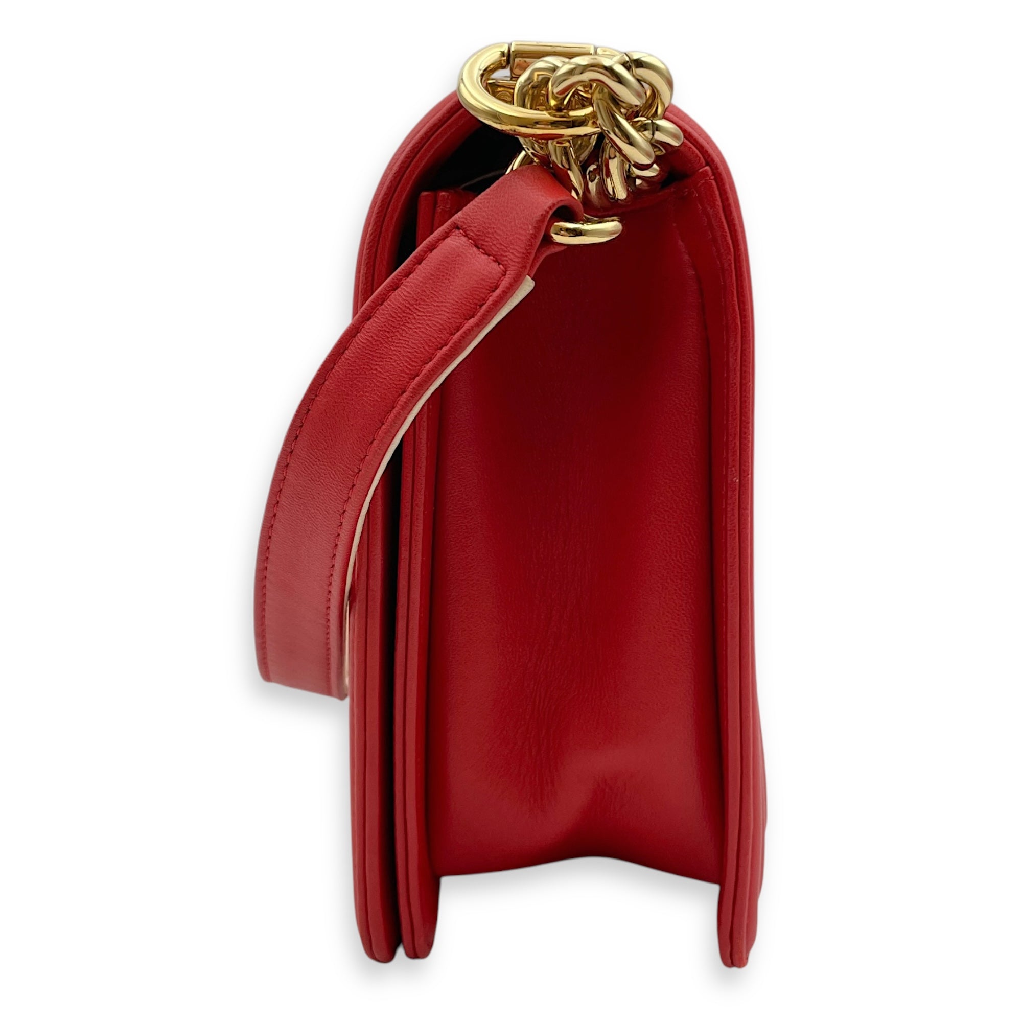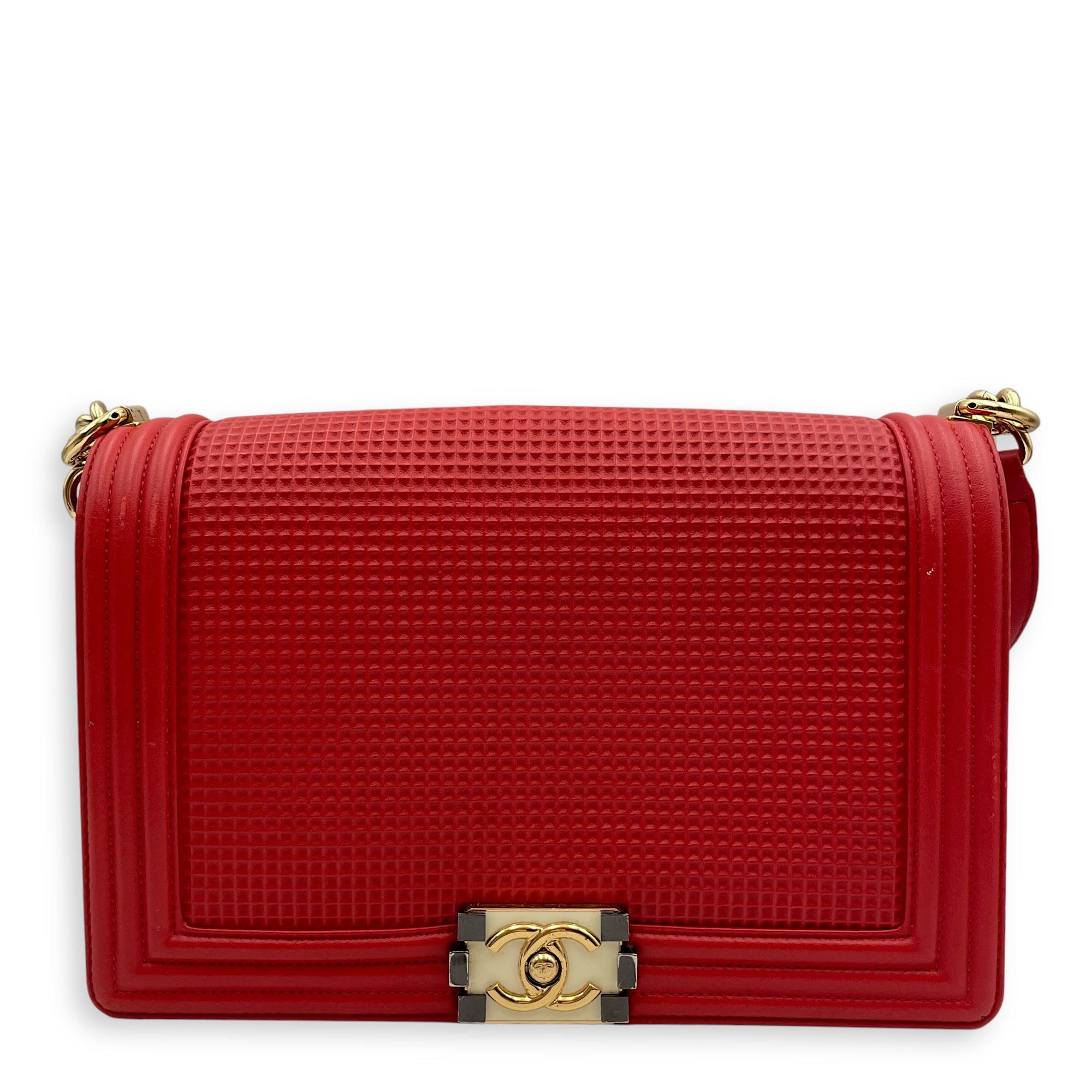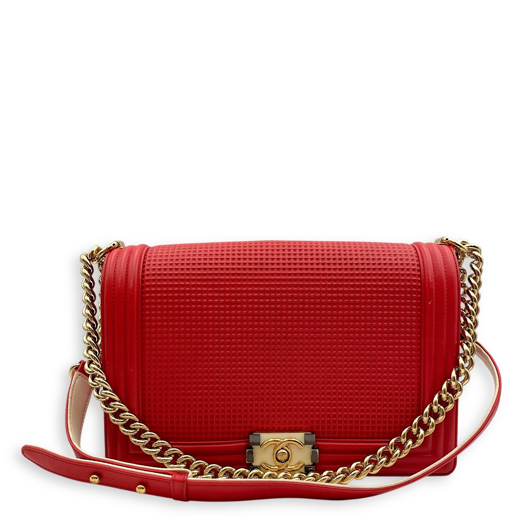 Be the first to review “Cube Embossed Boy Medium (28cm) Red, Cream Crossbody Bag in Calfskin, Gold hardware”