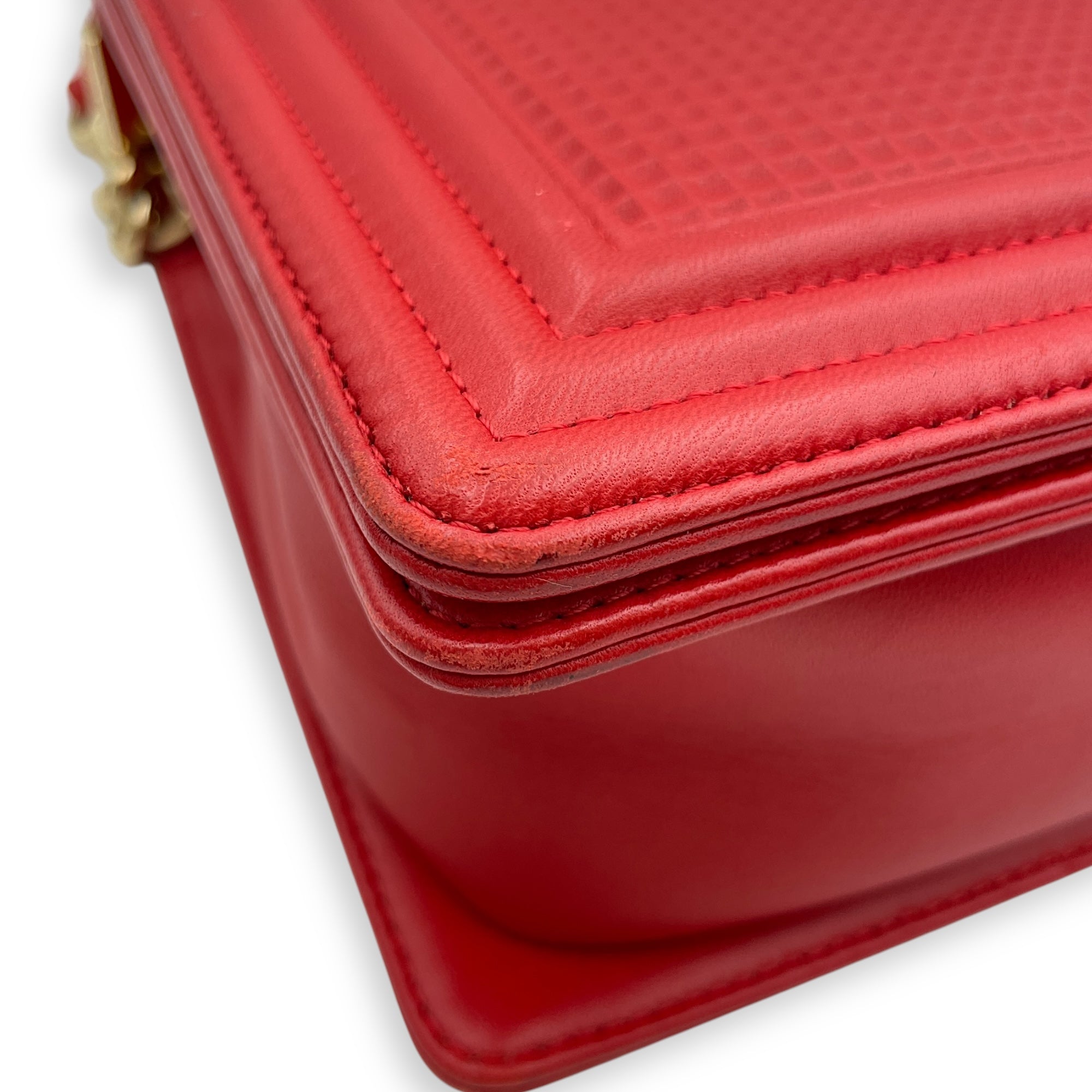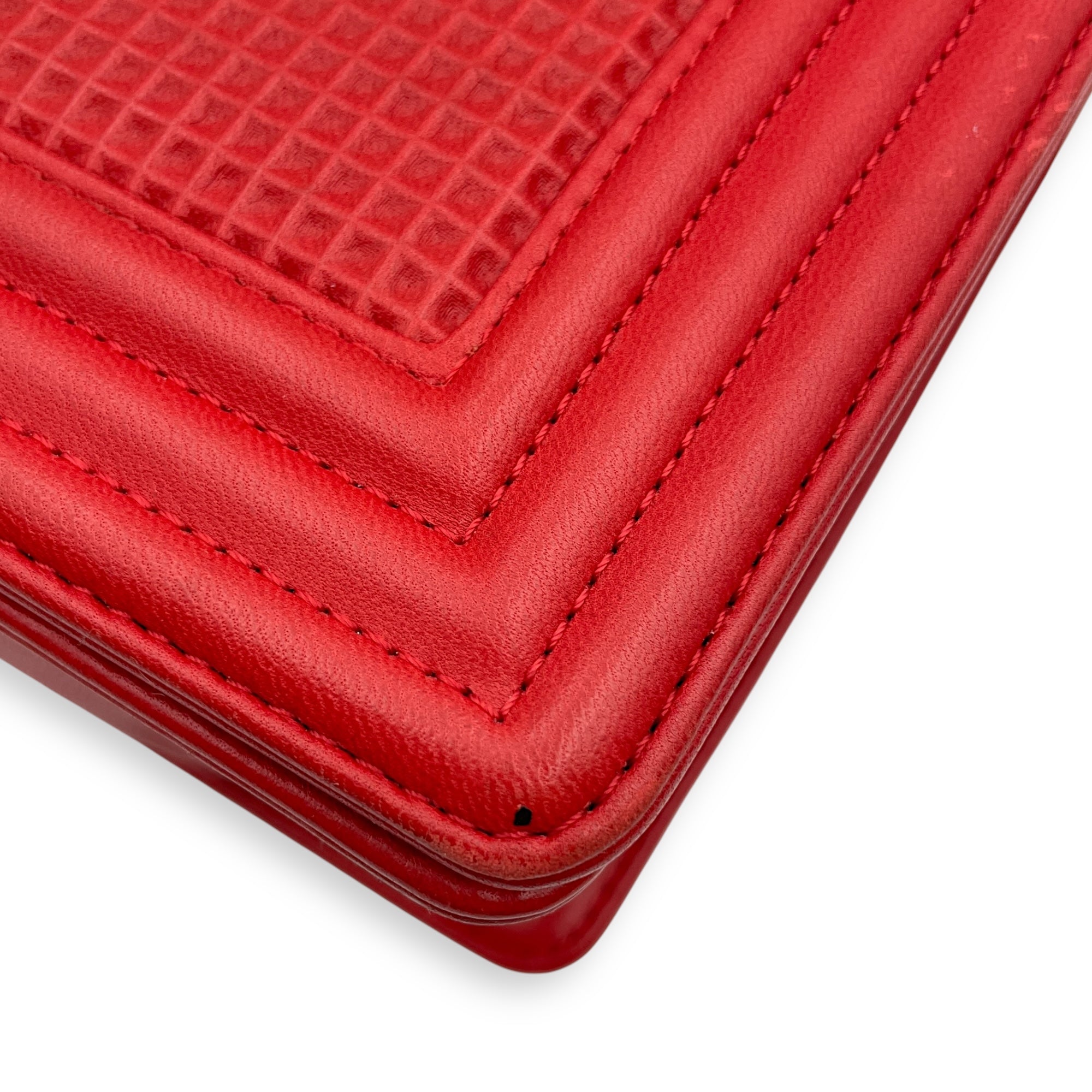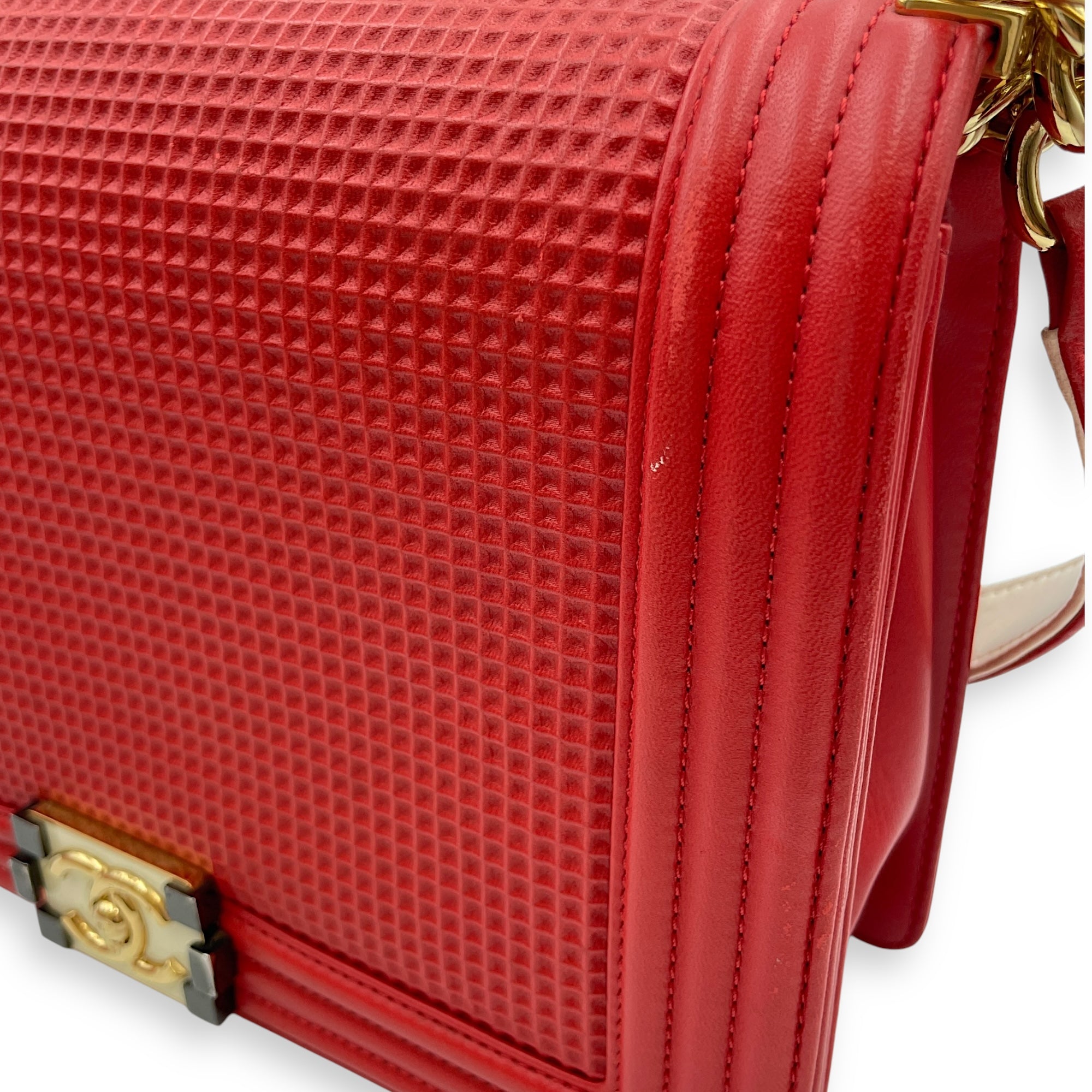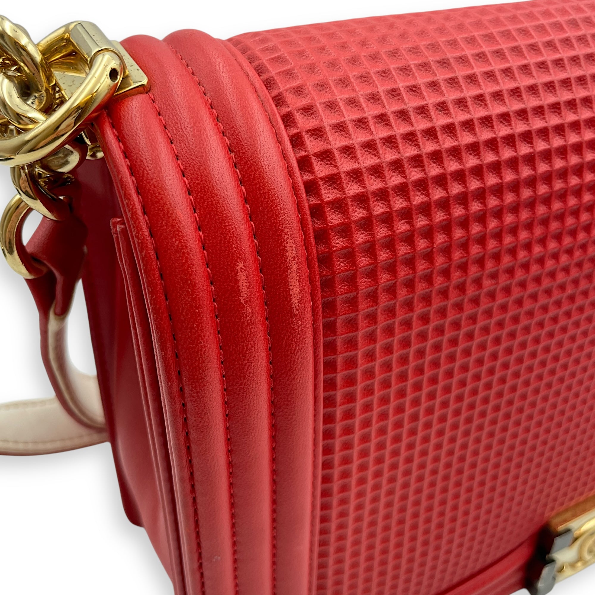 Cube Embossed Boy Medium (28cm) Red, Cream Crossbody Bag in Calfskin, Gold hardware