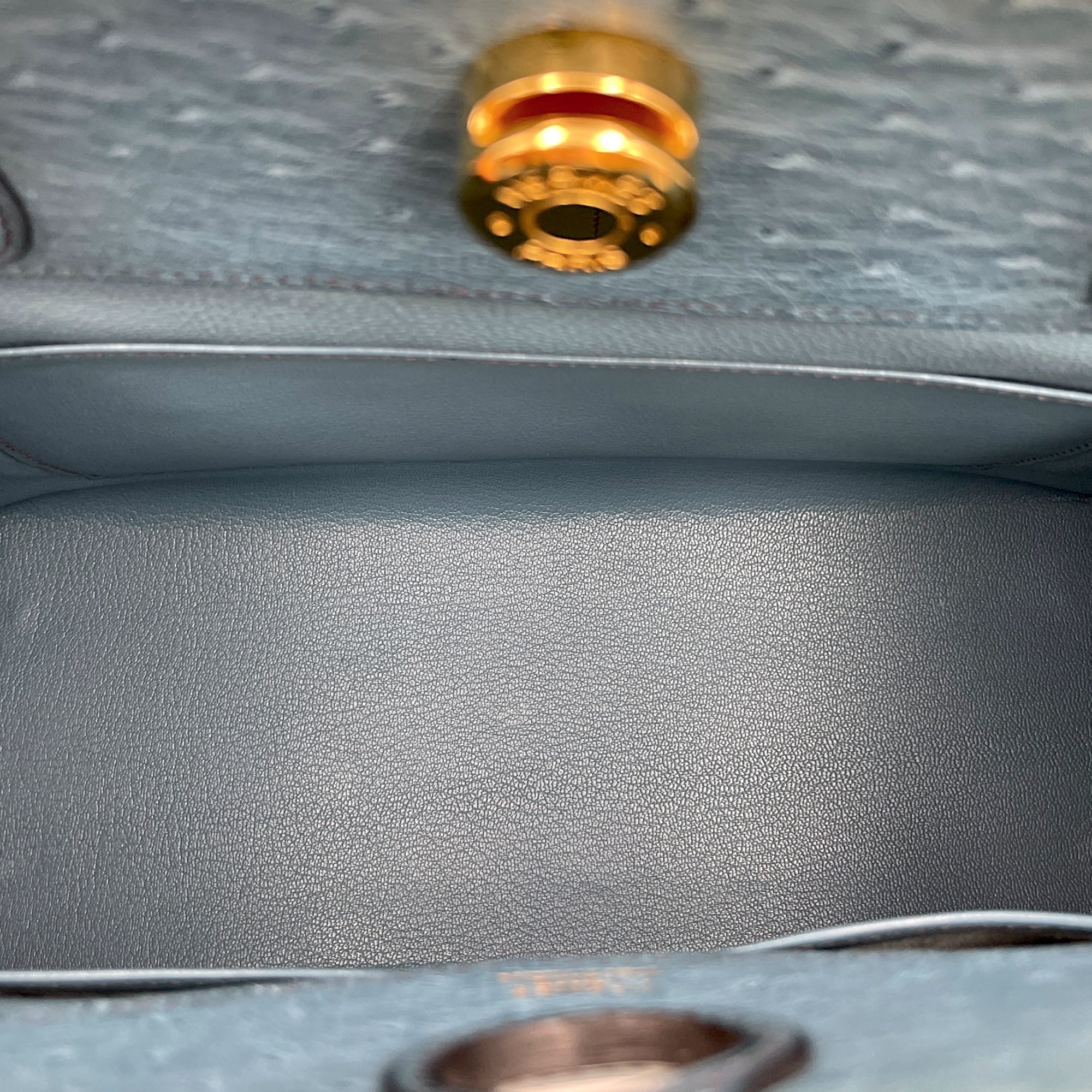 – Surface: Minor peeling on the ostrich – Zipper / Hardware: Slight scratches – Compartments: Minor scratches