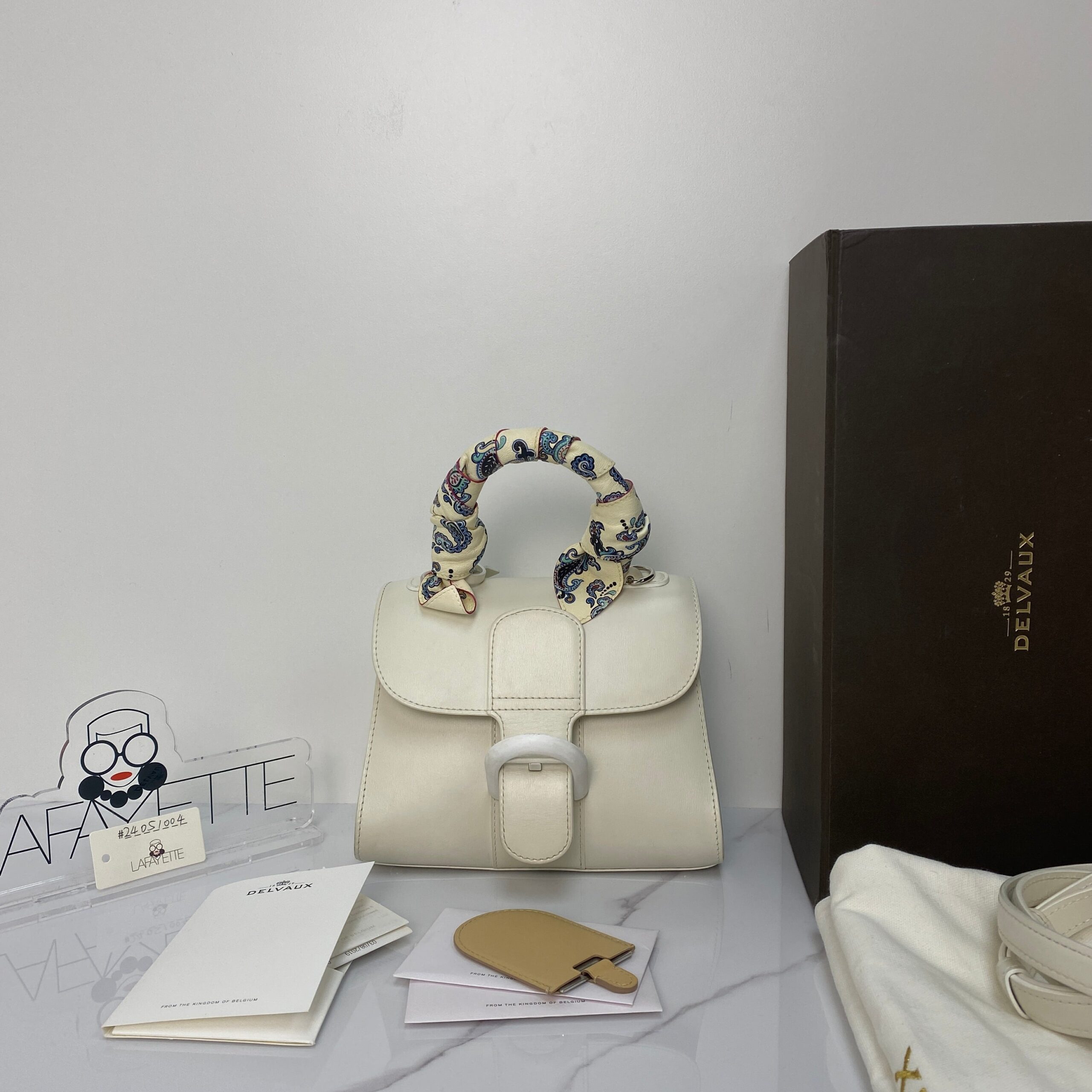 This season, the Delvaux Brillant Mini in white box calf leather is a fashion-forward choice. White accessories are trending, offering a fresh and modern look. Perfect for spring and summer, this mini bag pairs beautifully with vibrant prints and pastel shades, making it a must-have for your seasonal wardrobe.