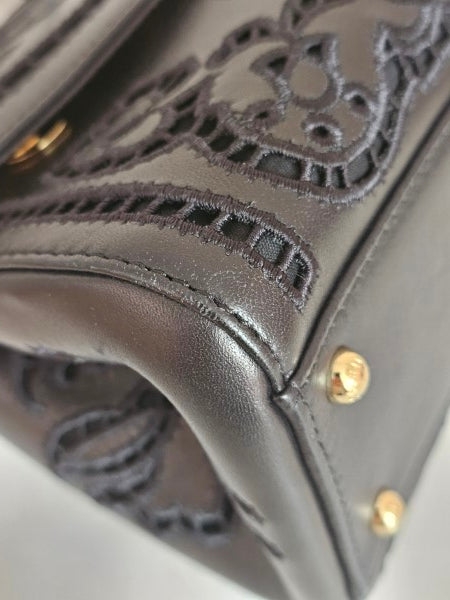 Dolce & Gabbana Black Embroidered Laser Cut Miss Sicily Satchel Medium Bag