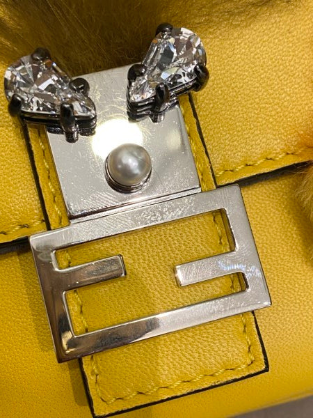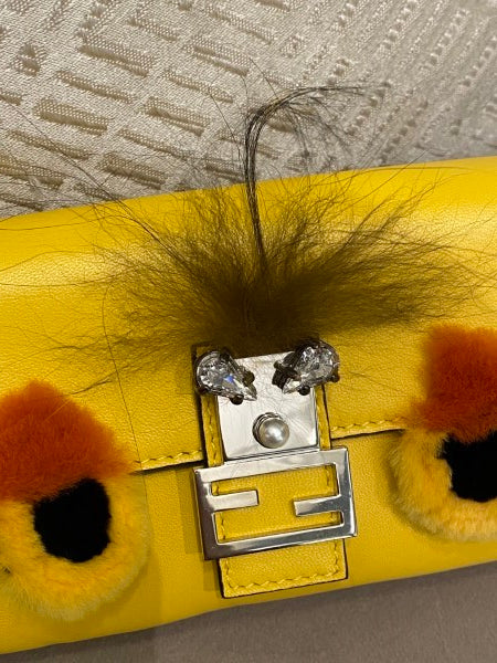 Fendi Yellow Fur Micro Monster Baguette Bag