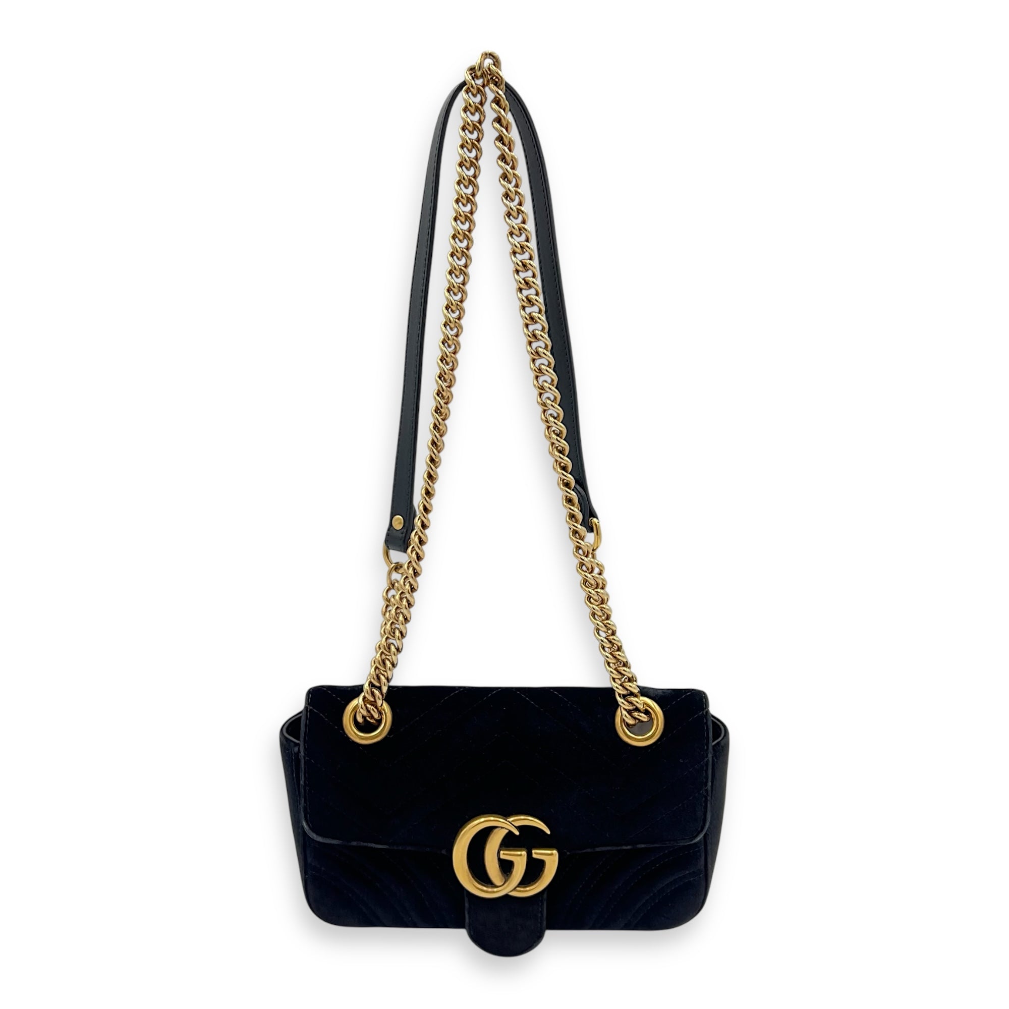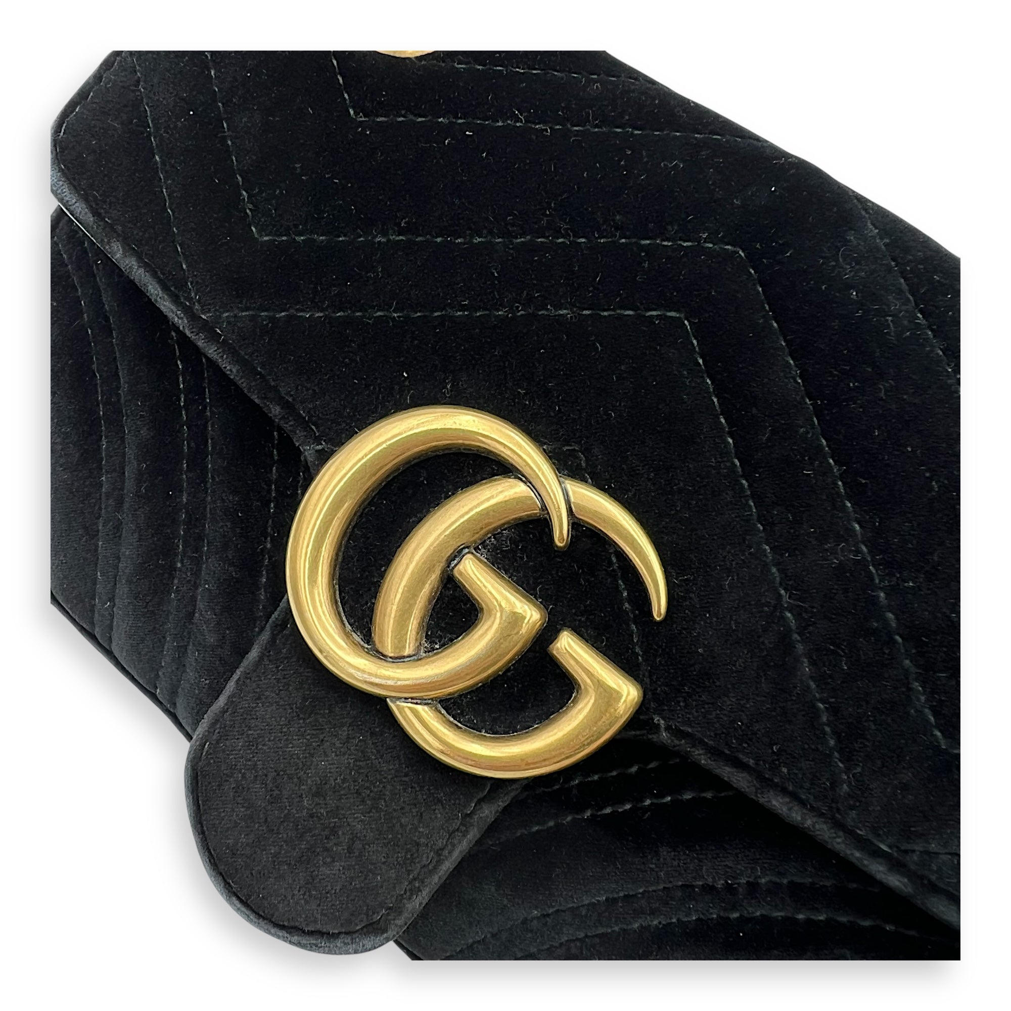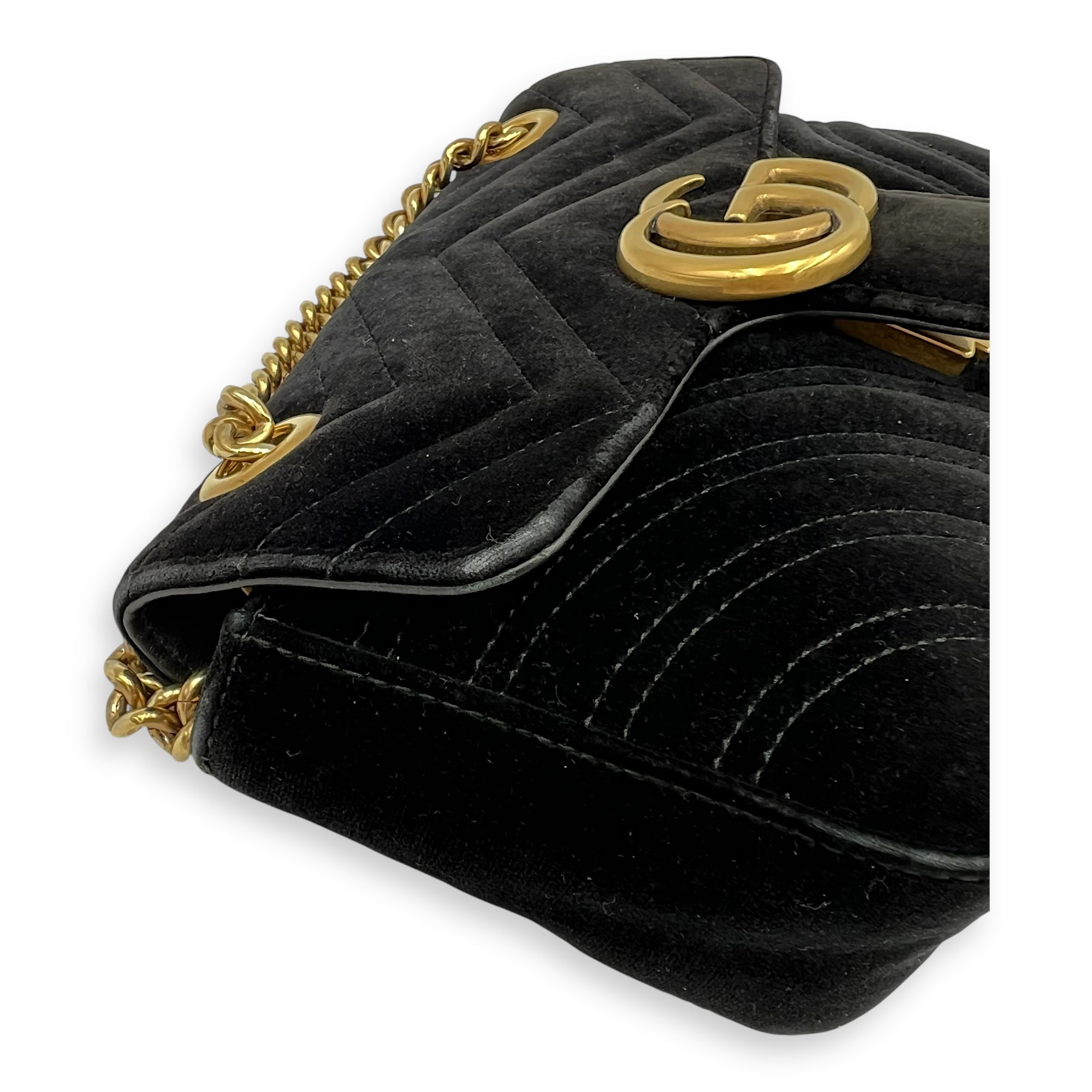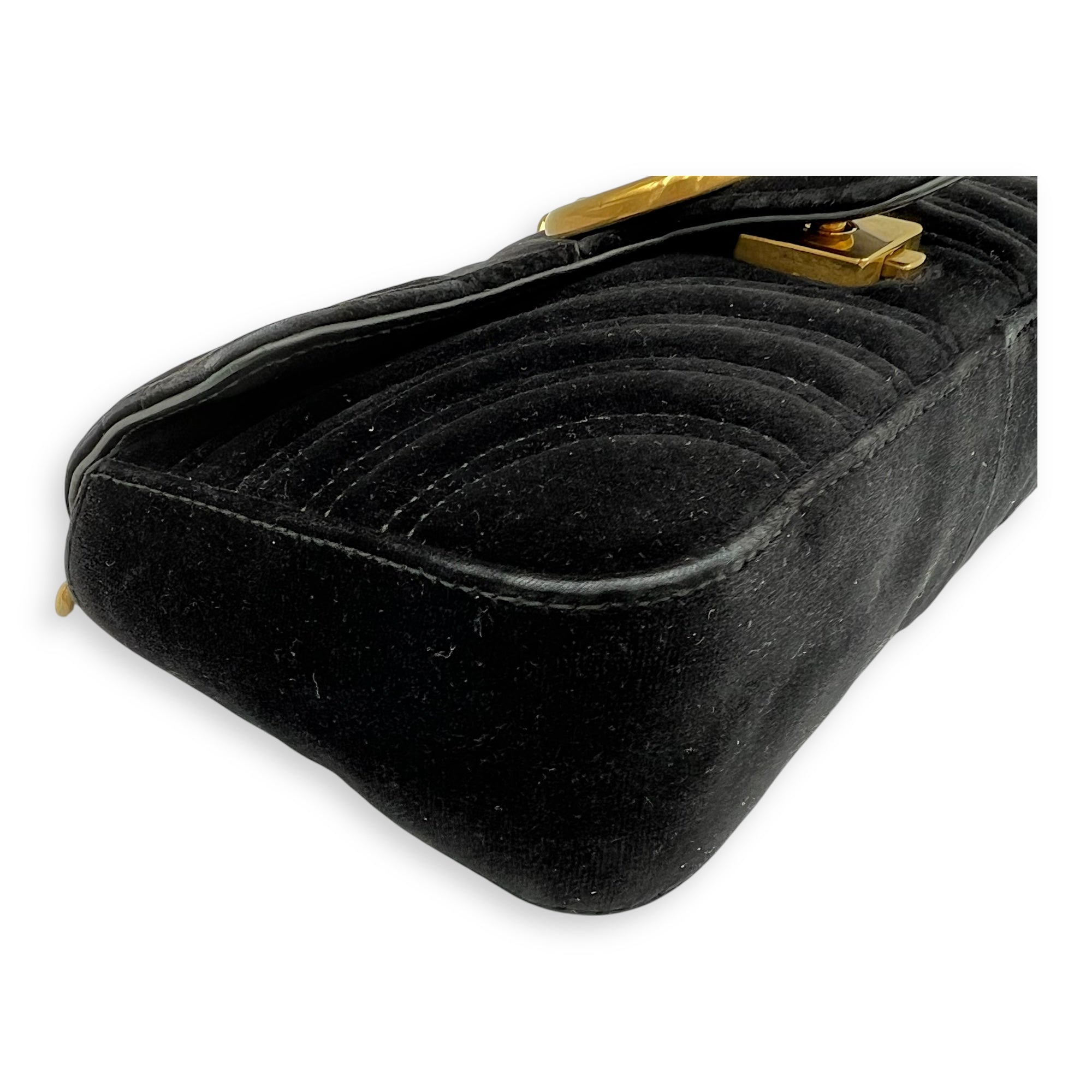 GG Marmont Shoulder Bag Mini Black in Velvet, Gold hardware