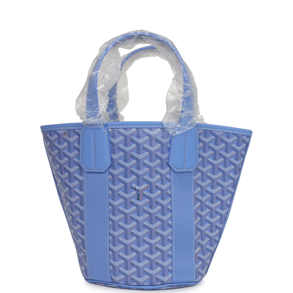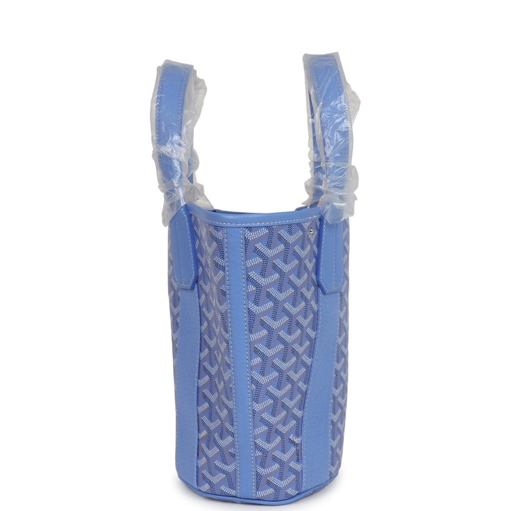Goyard Goyardine Belharra PM Iris Tote Palladium Hardware Shop for an authentic Goyard Belharra PM in Iris Goyardine canvas and chevroches calfskin with palladium hardware in new and never worn condition at Madison Avenue Couture.