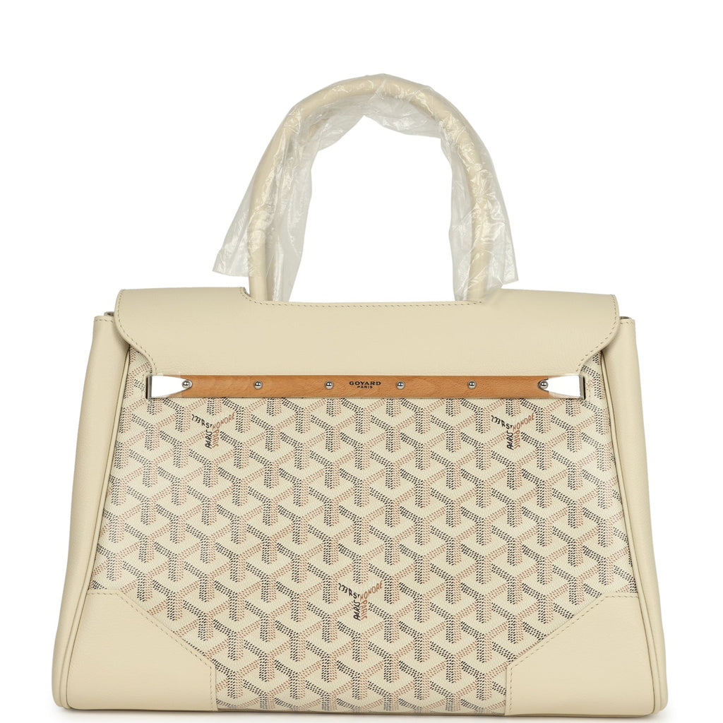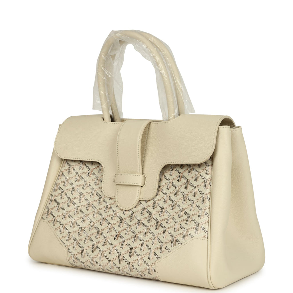 Goyard Goyardine Canvas Sand Saigon Tote Palladium Hardware Shop for an authentic Goyard Saigon Tote in Sand Goyardine canvas and chevroches calfskin with palladium hardware in new and never worn condition at Madison Avenue Couture.