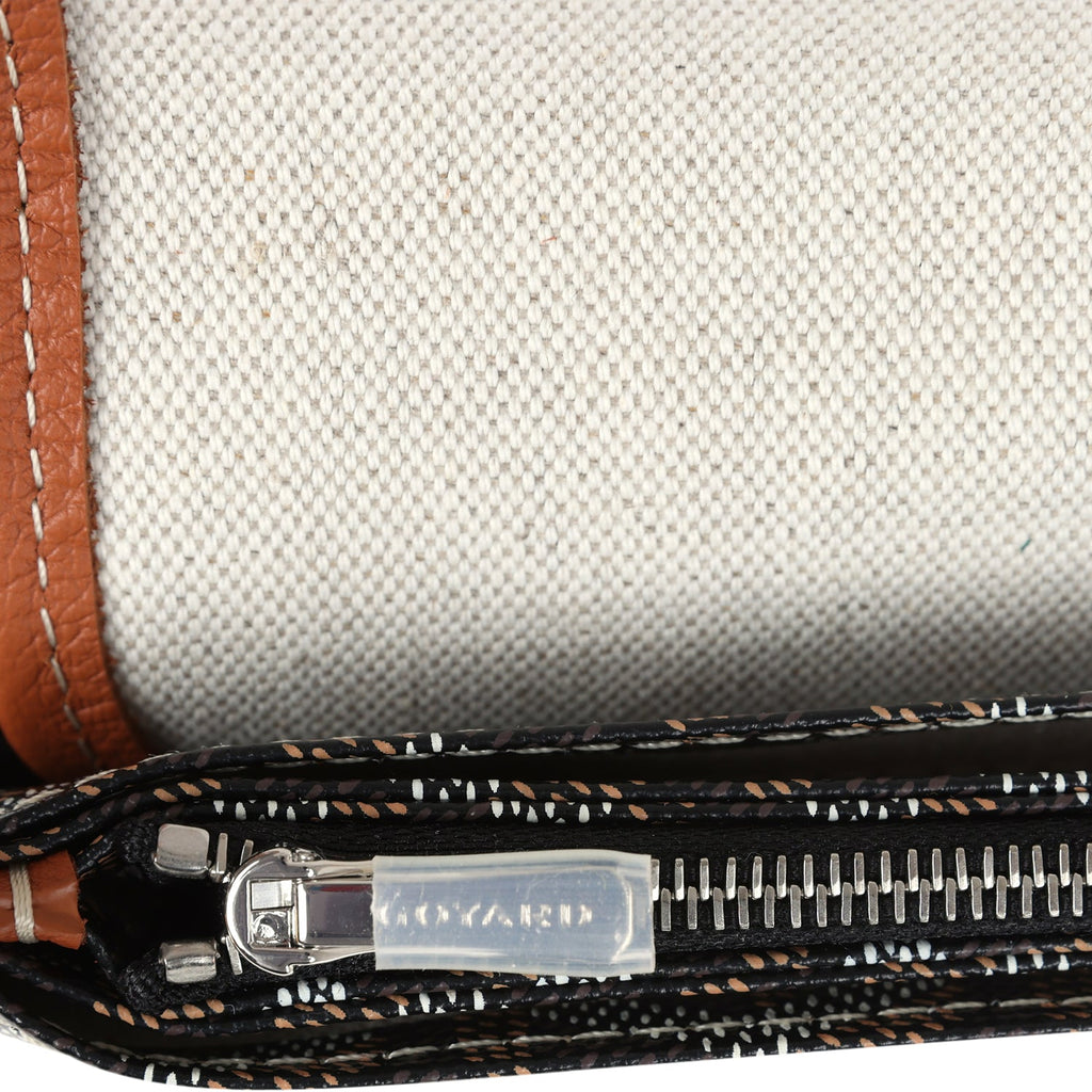 Goyard Plumet Pocket Wallet Black and Brown Goyardine Palladium Hardware Shop for an authentic Goyard Plumet Pocket Wallet in black and tan canvas with palladium hardware in new and never worn condition at Madison Avenue Couture.
