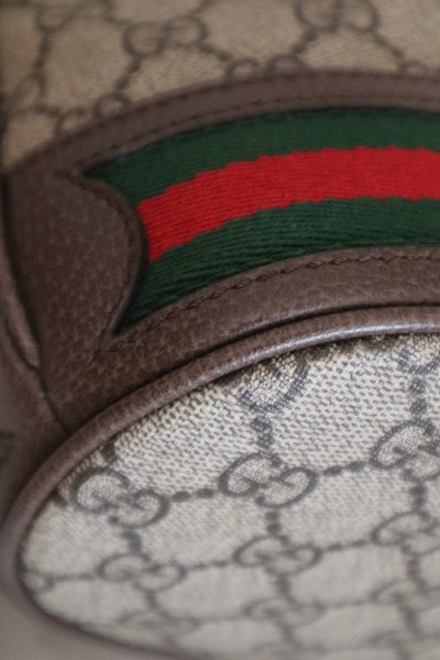 • Material: Ebony GG Supreme Canvas and Brown Leather Trim with Green/Red Web Stripe