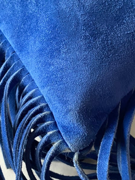 Gucci Blue Suede Bamboo Fringe Tote Bag