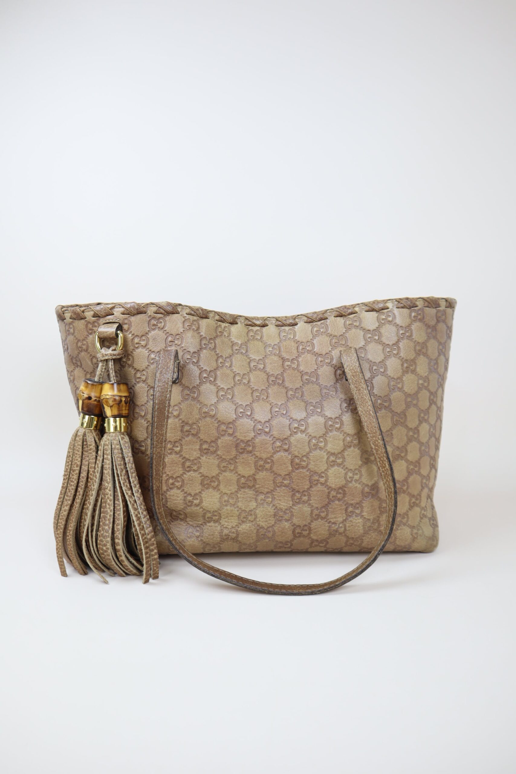 Gucci Brown Medium Bamboo Tassel Tote Bag