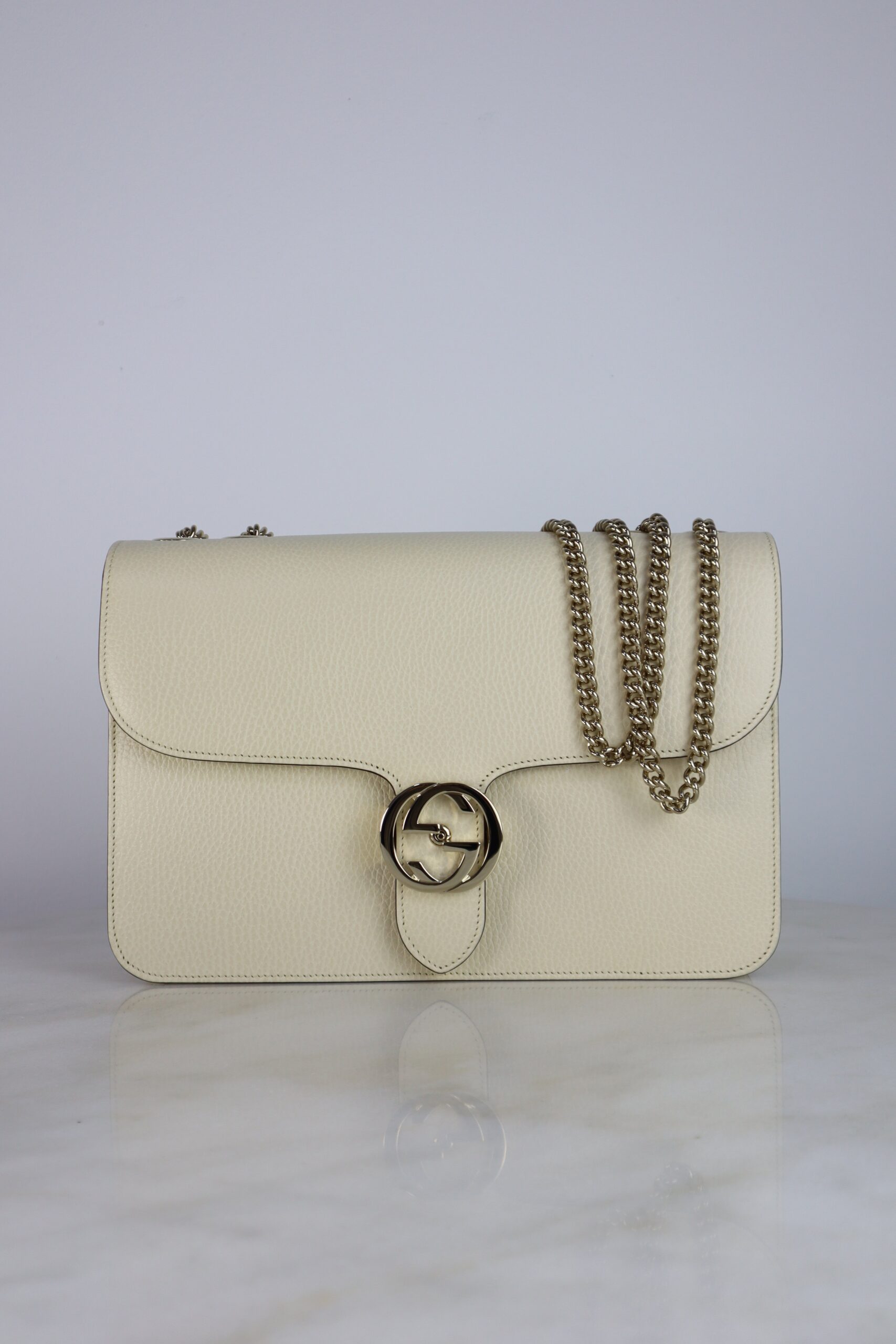 Be the first to review “Gucci Off White Pebbled Interlocking Medium Bag”