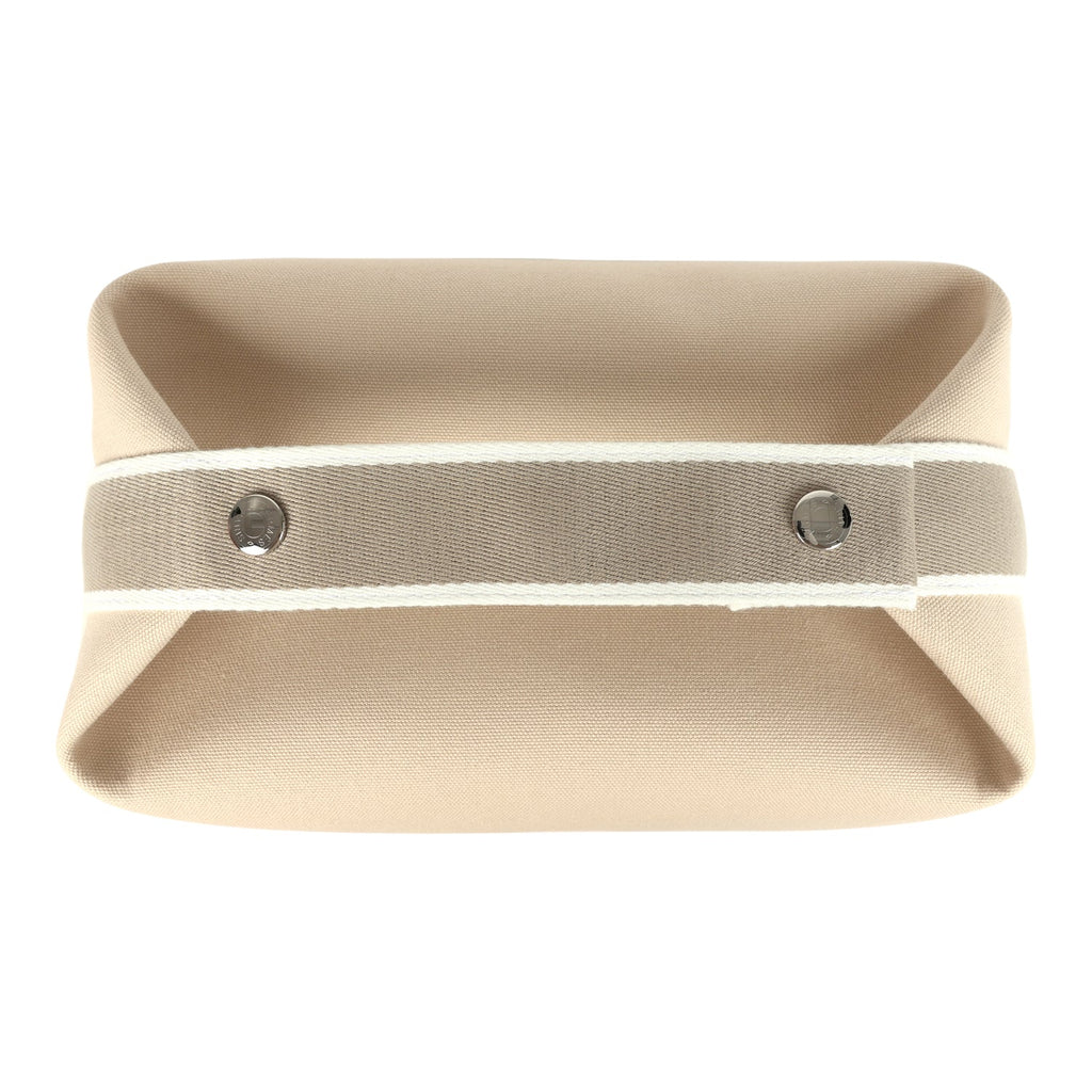 This Hermes Bride A Brac Case GM Neutral Toile canvas with palladium hardware, features large pouch, anti-stain waterproof lining, embroidered “H” on the front, tonal stitching, zippered closure, snap closure top handle.The interior has three interior pockets and is lined in classic herringbone lining.Origin: FranceCondition: New and never wornMeasurements: 9.25″ width x 8″ height x 5.5″ depth; 4″ handle
