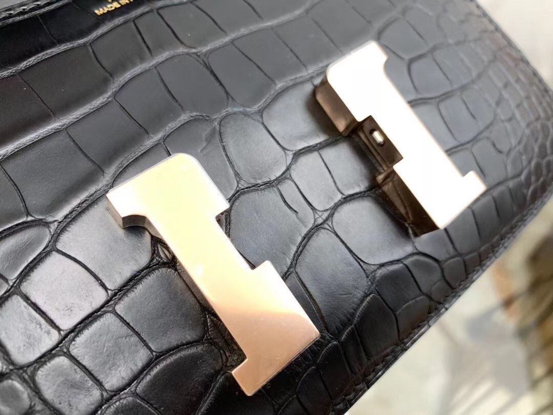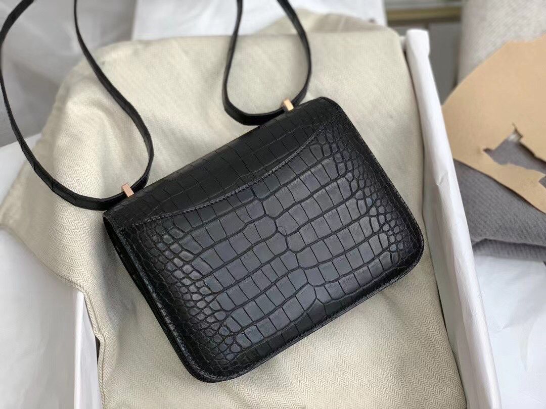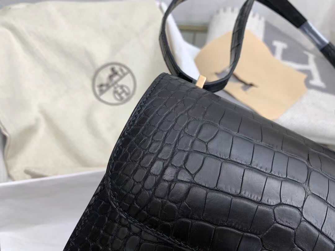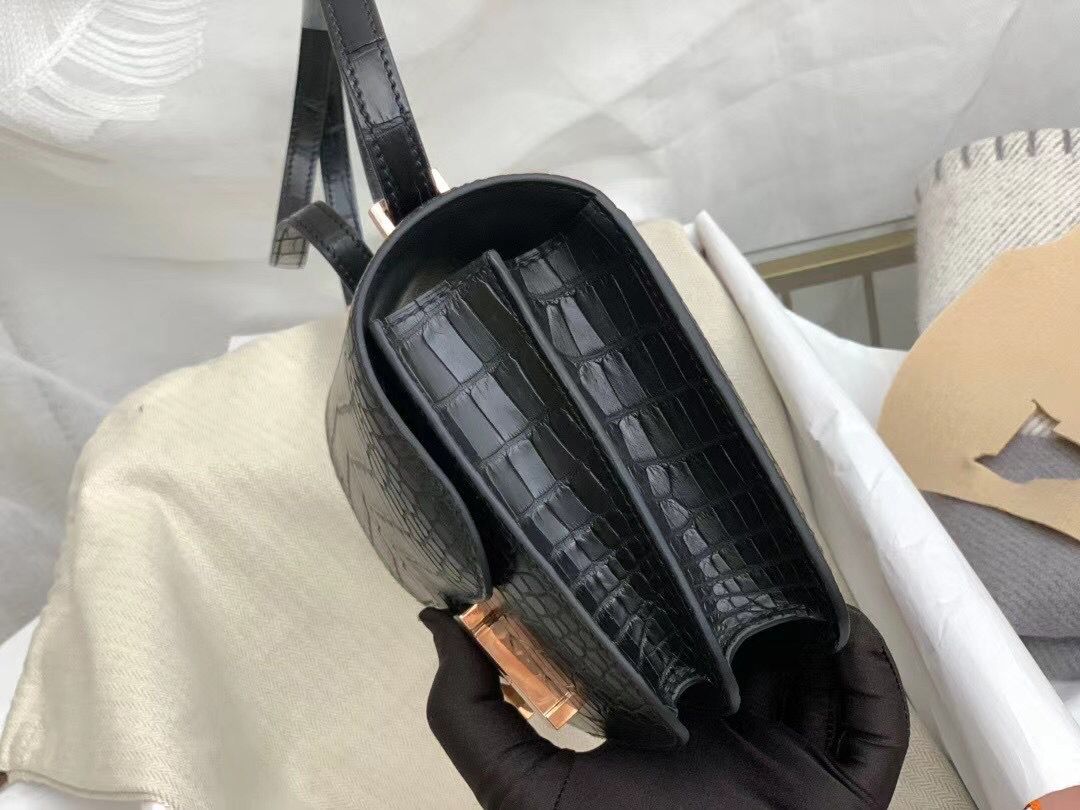 Hermes Constance 18 Handmade Bag In Black Alligator Crocodile Skin