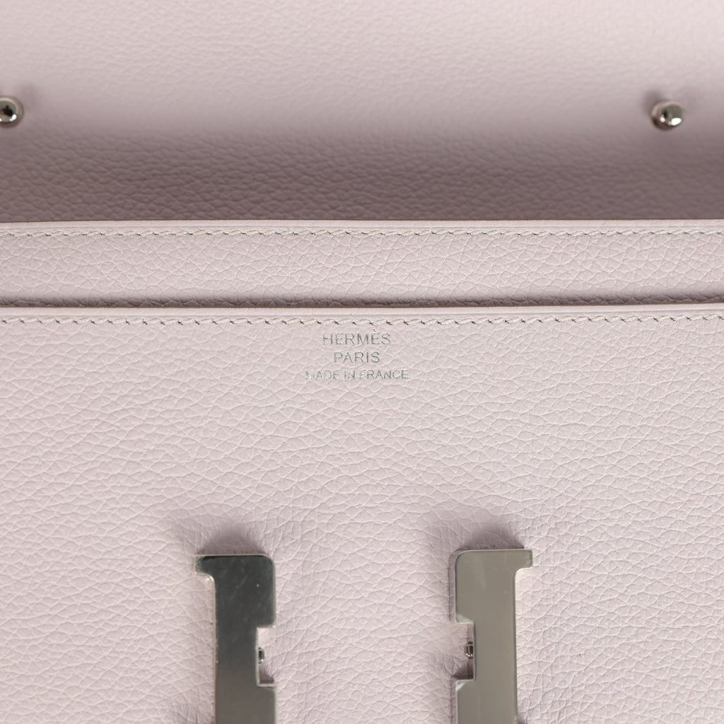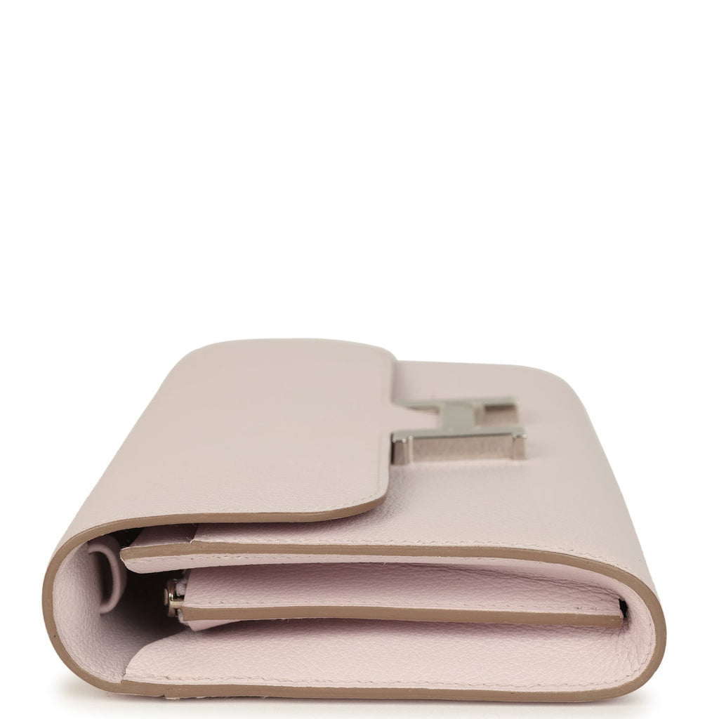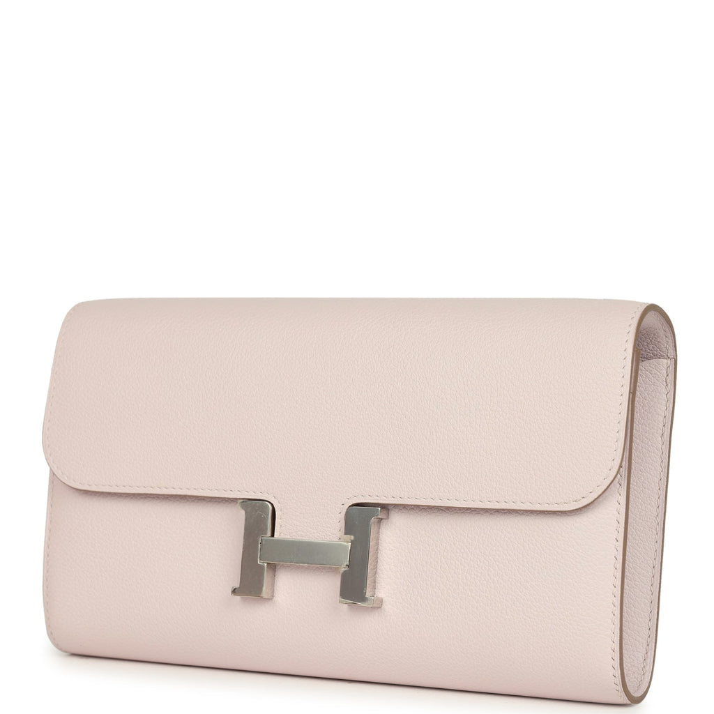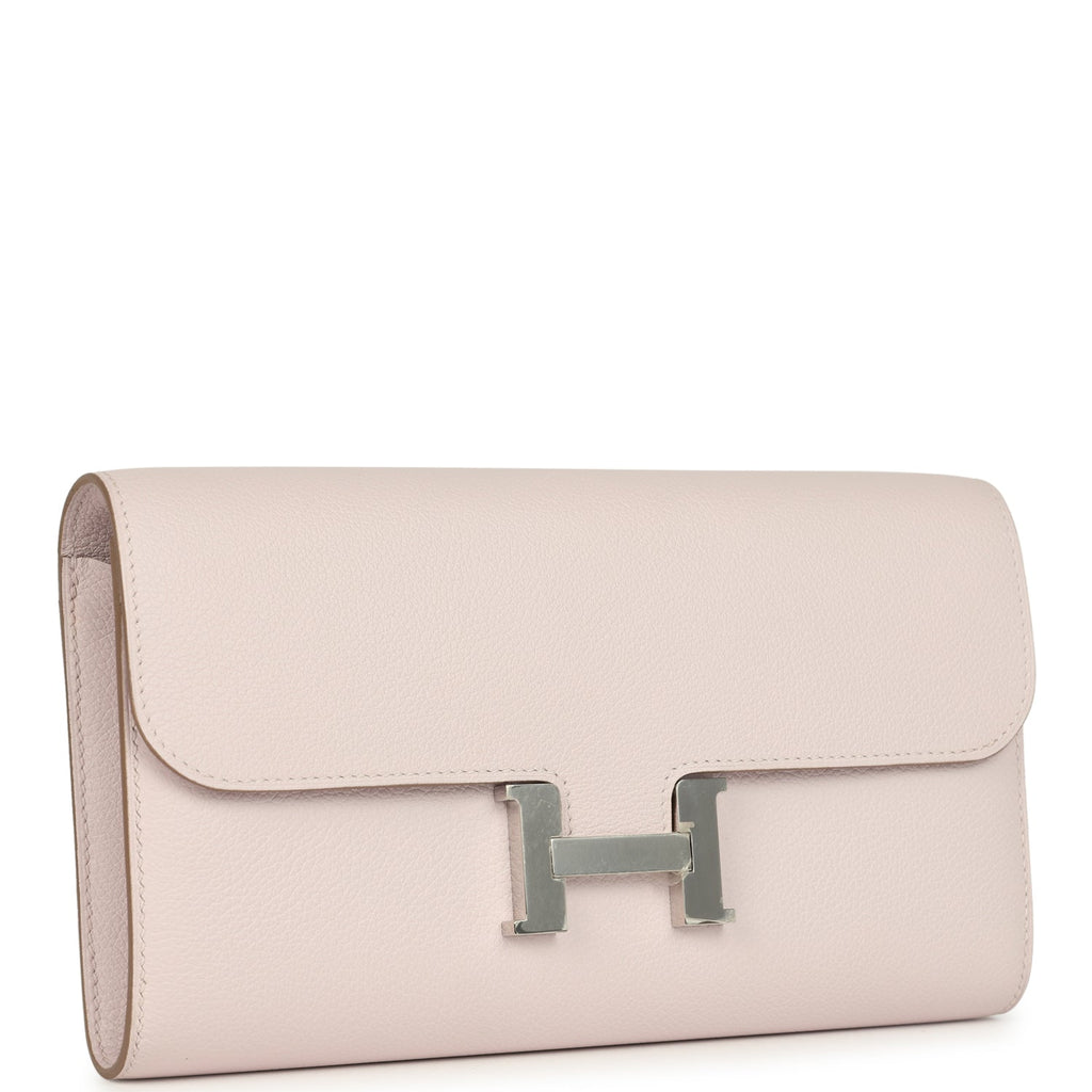 Hermes Constance Wallet To Go Mauve Pale Evercolor Palladium Hardware Shop for an authentic Hermes Constance Wallet To Go in Mauve Pale evercolor with palladium hardware in new and never worn condition at Madison Avenue Couture.
