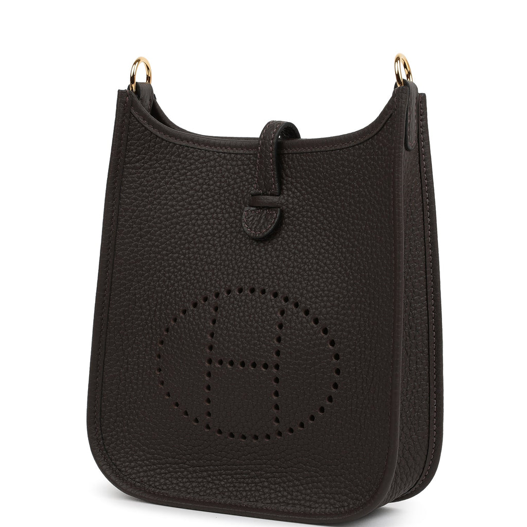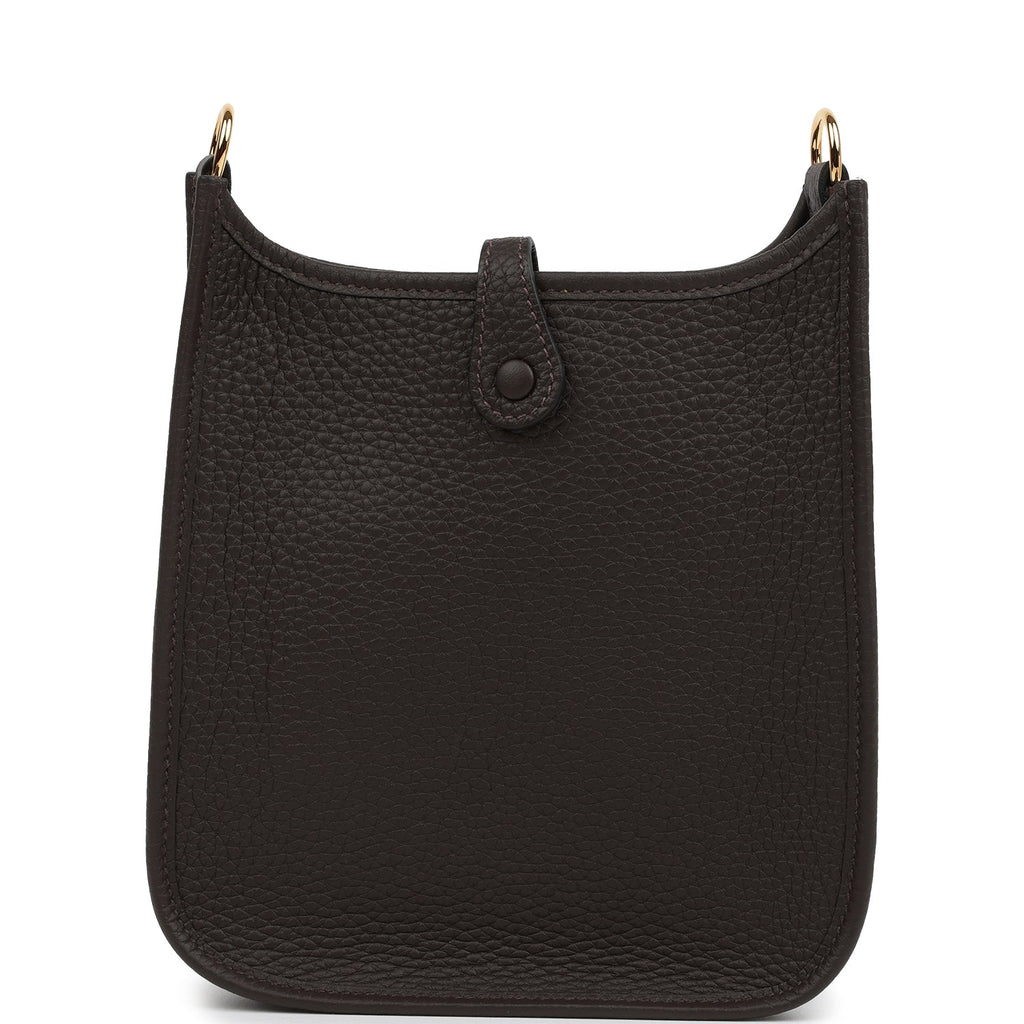 Hermes Evelyne TPM Ebene Clemence Gold Hardware Shop for an authentic Hermes Evelyne TPM in Ebene clemence leather with gold hardware in new and never worn condition at Madison Avenue Couture.