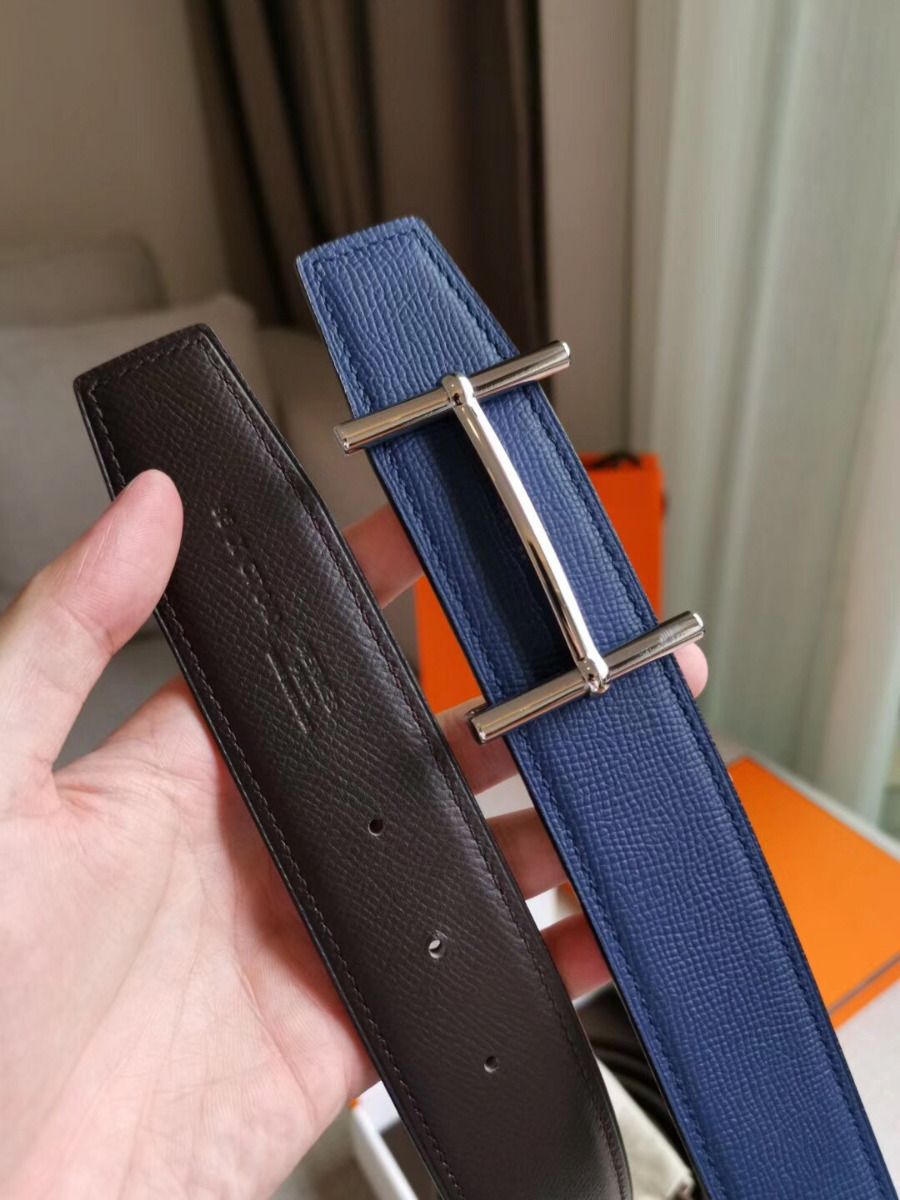 Hermes H d'Ancre Reversible Belt In Indigo/Black Epsom Leather