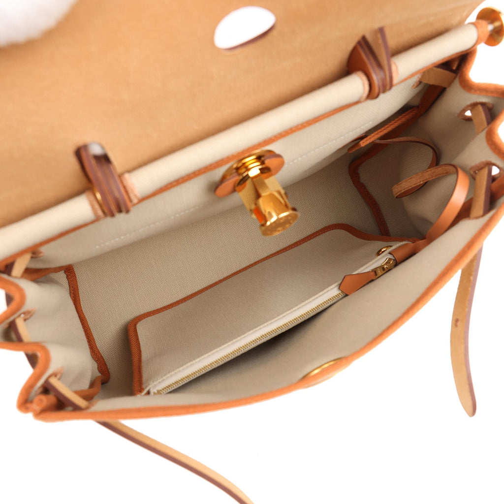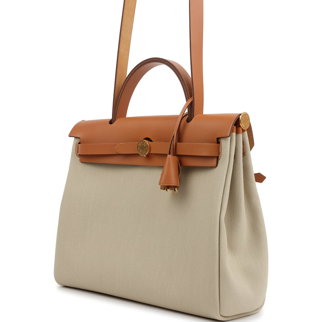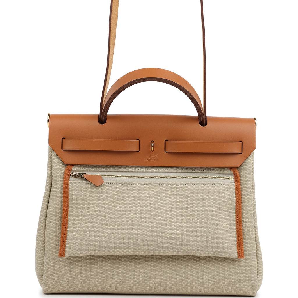 Hermes Herbag Zip PM 31 Beton Toile H & Fauve Vache Hunter Gold Hardware