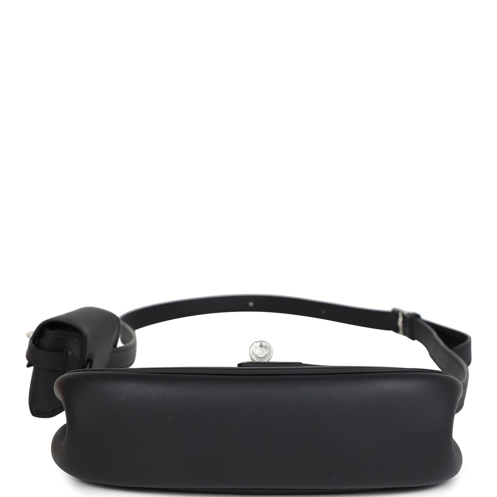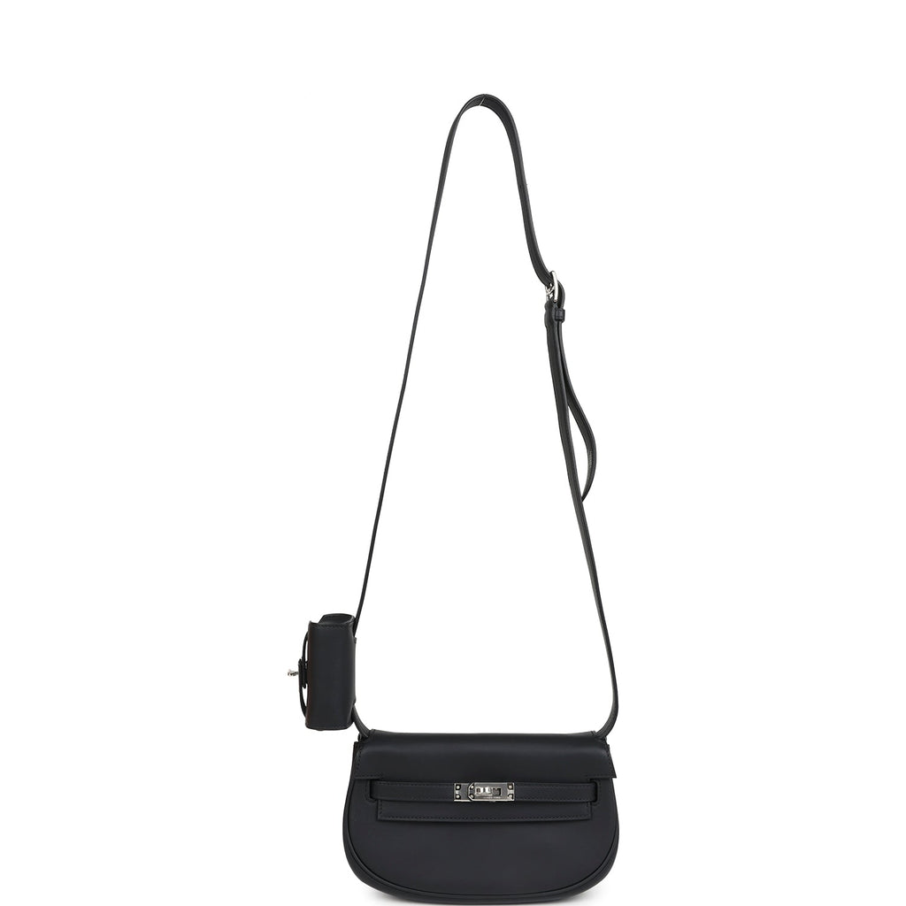 This Kelly Moove Black swift calfksin leather with palladium hardware and features tonal stitching, round half moon shape, pull straps that attaches to a toggle closure, and an adjustable flat leather strap with small pouch.The interior is lined in Black Swift calfskin leather with one slit pocket on rear wall.Collection: K (2025)Origin: FranceCondition: New and never worn (plastic on hardware)Accompanied by: Hermes box, Hermes dustbag, felt, small removable pouch, pouch dustabg, removable strap, strap dustbag, carebook, ribbonMeasurements: bag: 7.5″ x 4.75″ x 2.25″; small bag pouch: 2.9″ x 2.5″ x 1″ handle drop; adjustable shoulder strap drop: 5″-19.5″