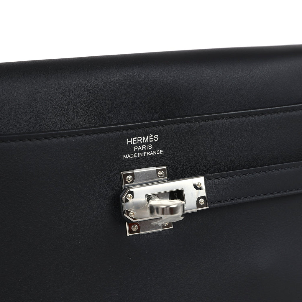 Hermes Kelly Moove Black Swift Palladium Hardware Shop for an authentic Hermes Kelly Moove in Black swift leather with palladium hardware in new and never worn condition at Madison Avenue Couture.