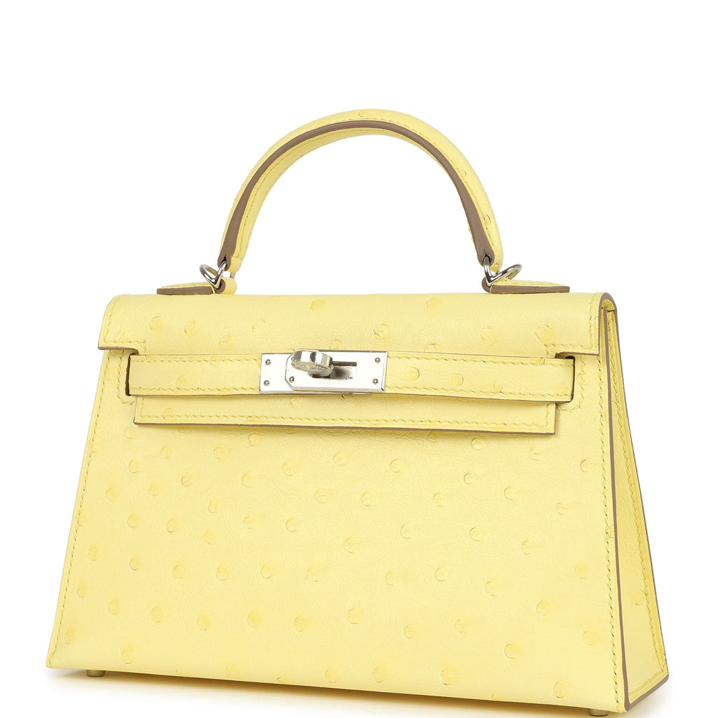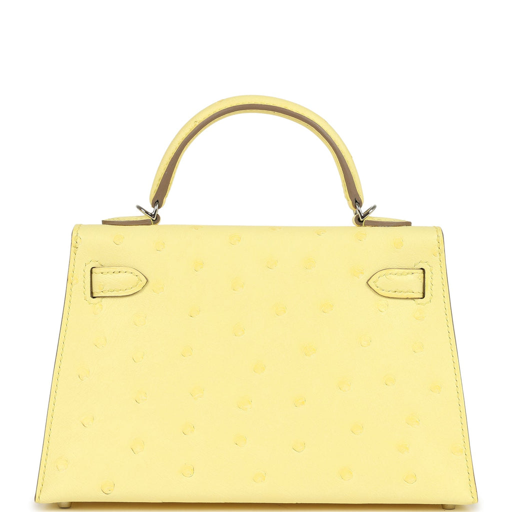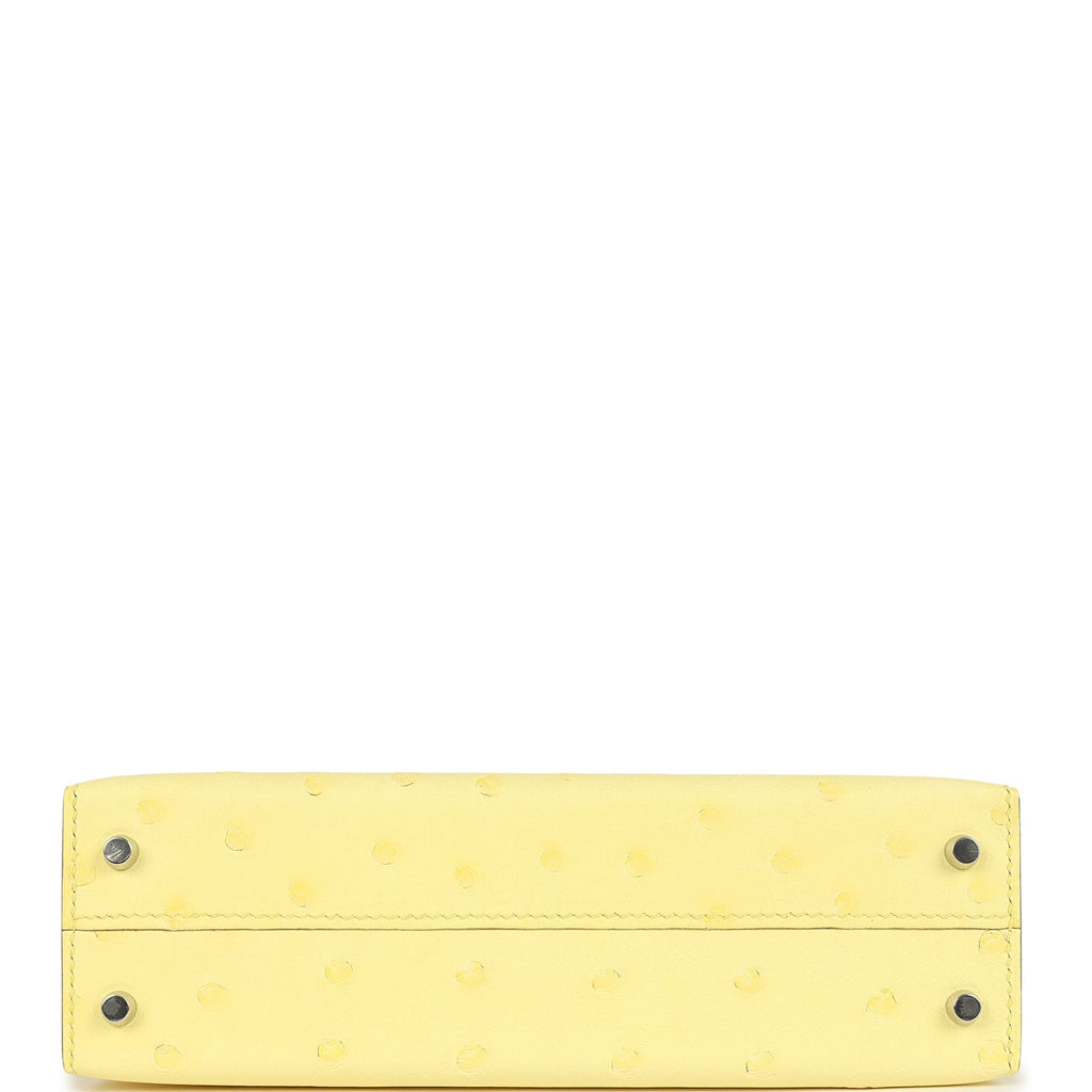 Hermes Kelly Sellier 20 Limoncello Ostrich Palladium Hardware Shop for an authentic Hermes Kelly Sellier 20 Limoncello ostrich leather with palladium hardware in new and never worn condition at Madison Avenue Couture.