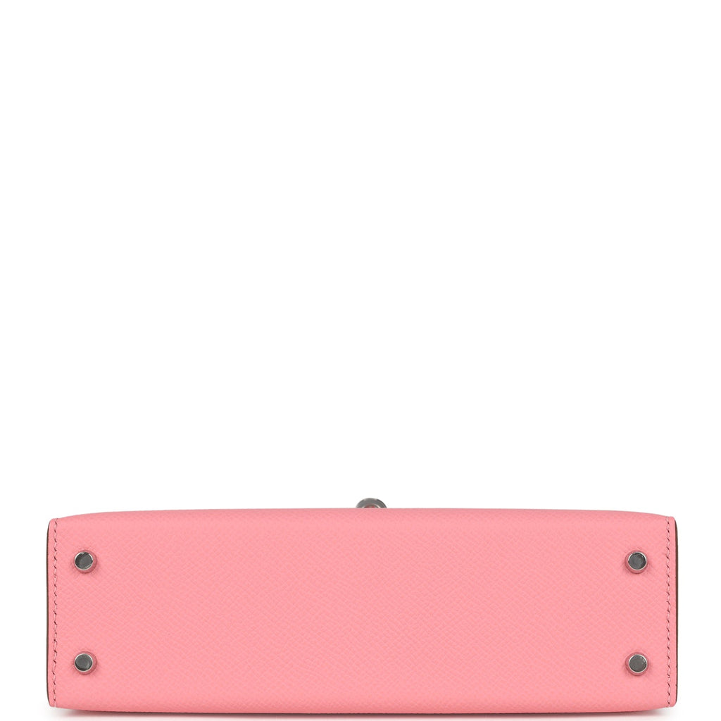 Hermes Kelly Sellier 20 Rose Confetti Epsom Palladium Hardware Shop for an authentic Hermes Kelly Sellier 20 in Rose Confetti epsom leather with palladium hardware in new and never worn condition at Madison Avenue Couture.