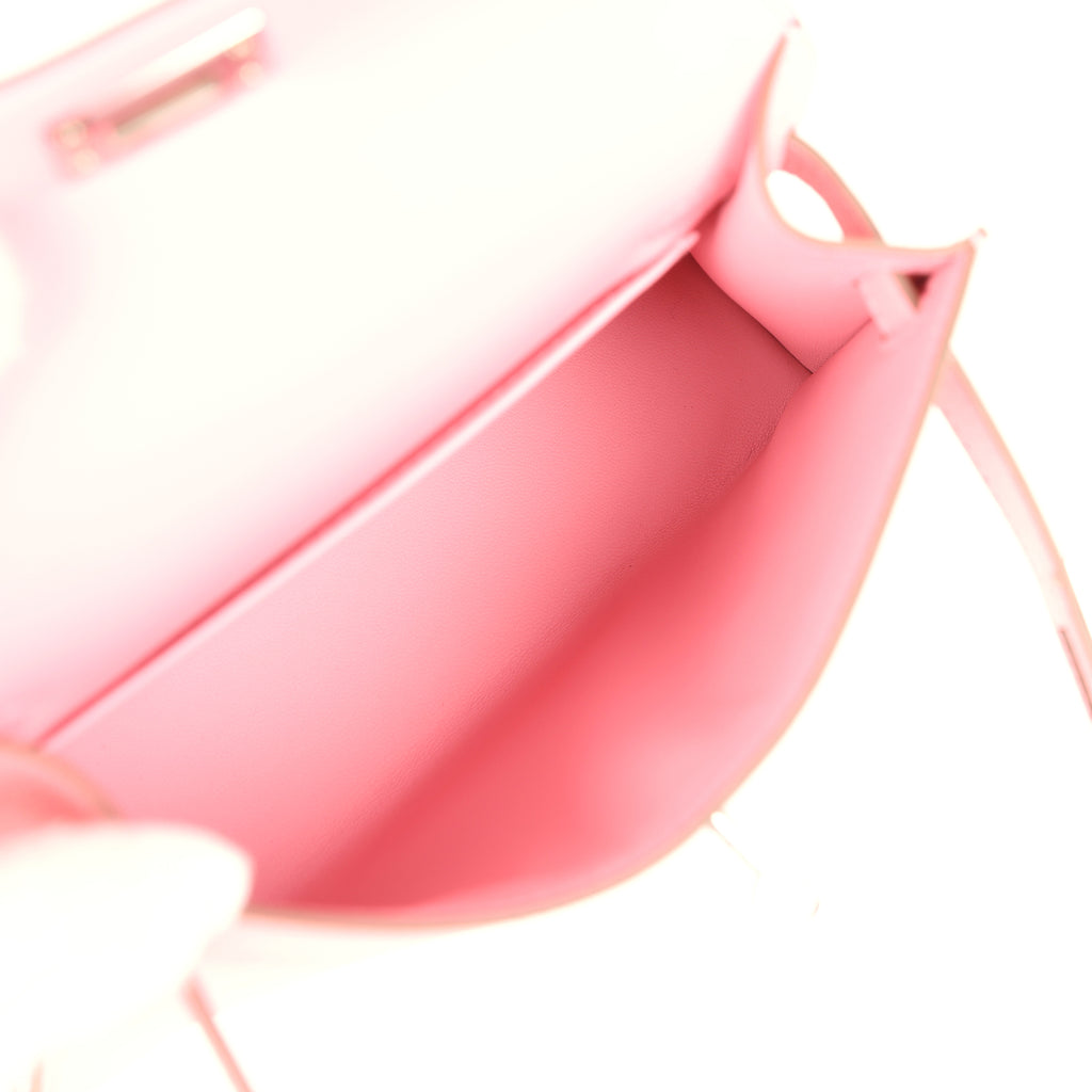 This Kelly, in the Sellier style, is in Rose Confetti epsom leather with palladium hardware and has tonal stitching, two straps with front toggle closure, single rolled handle and removable shoulder strap.The interior is lined with Rose Confetti lambskin leather and has one open pocket on the back wall.Collection: K (2025)Origin: FranceCondition: New and Never worn (plastic on hardware)Accompanied by: Hermes box, Hermes dustbag, shoulder strap, shoulder strap dustbag, felt, carebook and ribbonMeasurements: 7.5″ width x 4.5″ height x 2.2″ depth; 2.5″ handle drop (18″ shoulder strap drop)