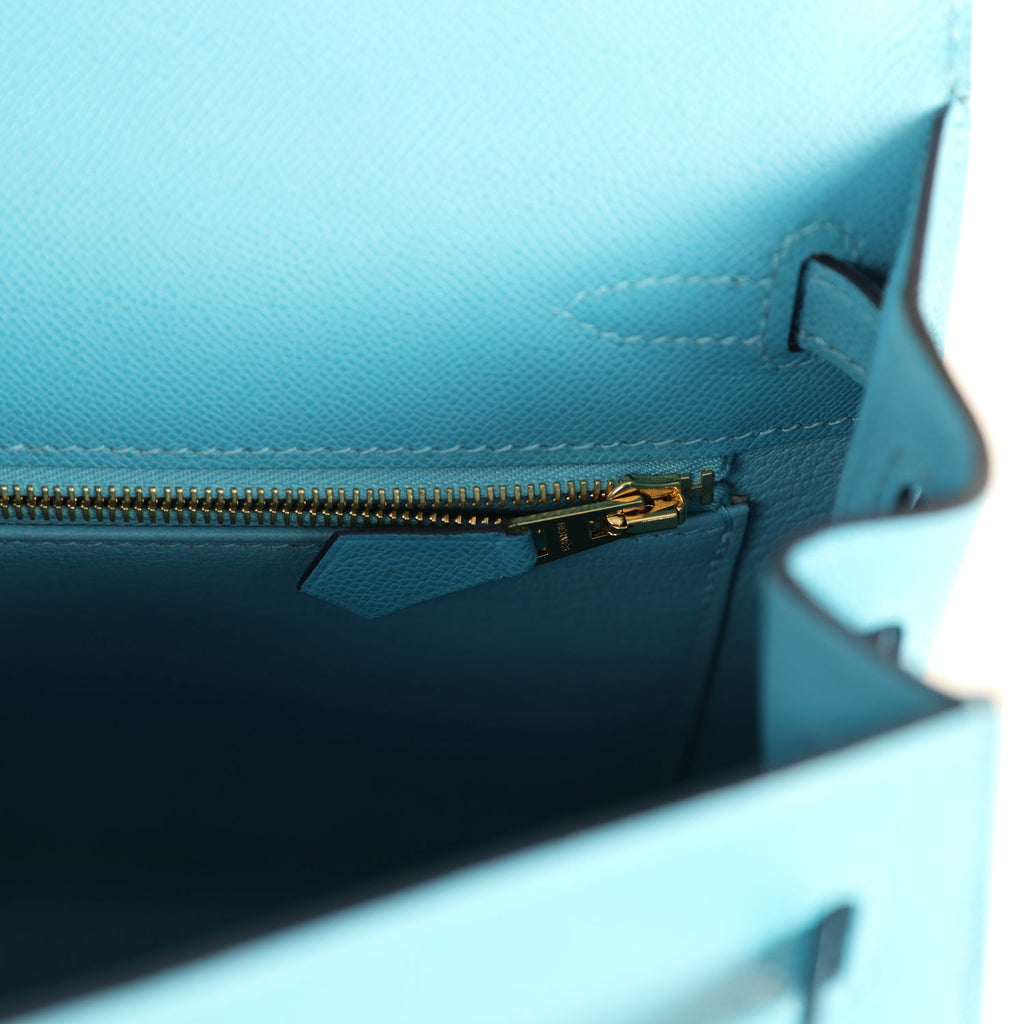 This Kelly, in the Sellier style, is in Bleu Du Nord Madame leather with gold hardware and has tonal stitching, front flap, two straps with center toggle closure, clochette with lock and two keys a single rolled handle and removable shoulder strap.The interior is lined with Bleu Du Nord chevre leather and has one zip pocket with an Hermes engraved pull and one open pocket on the opposite side.Collection: Z (2021)Origin: FranceCondition: New and never worn (plastic on hardware)Accompanied by: Hermes box, Hermes dustbag, removable strap, strap dustbag, lock, 2 keys, clochette, cochette dustbag, carebook, rainhatMeasurements: 9.8″ width x 7″ height x 3.75″ depth; 3.75″ handle drop (16.5″ shoulder strap drop)