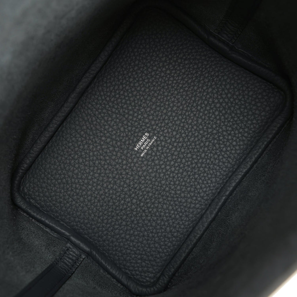 This Picotin is in Gris Misty clemence leather with palladium hardware and has tonal stitching with two top handles.The interior is lined with Gris Misty natural suede leather, no interior pockets and has a pull through closure secured by padlock.Collection: K (2025)Origin: FranceCondition: New and never worn (plastic on hardware)Accompanied by: Hermes box, Hermes dustbag, lock, two keys, lock and key dustbag, carebookMeasurements: 7″ width x 7.5″ height x 5.5″ depth; 5.5″ handles