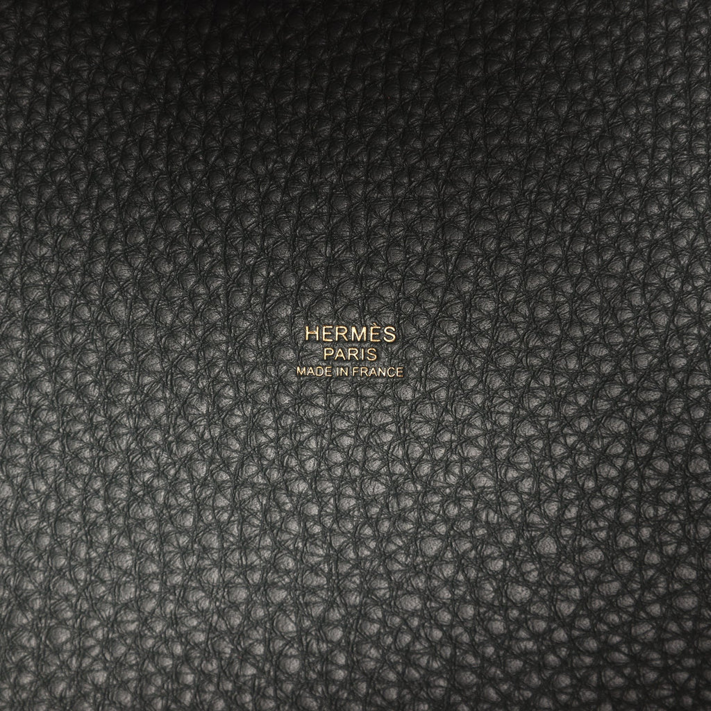 This Picotin Lock 22 is in Vert Mangrove clemence leather with gold hardware and has tonal stitching with two top handles.The interior is lined with Vert Mangrove natural leather, no interior pockets and has a pull through closure secured by padlock.Collection: K (2025)Origin: FranceCondition: New and never worn (plastic on hardware)Accompanied by: Hermes box, Hermes dustbag, lock, two keys, lock and key dustbag, carebookMeasurements: 8.5” width x 8” height x 6.5” depth; 7” handles