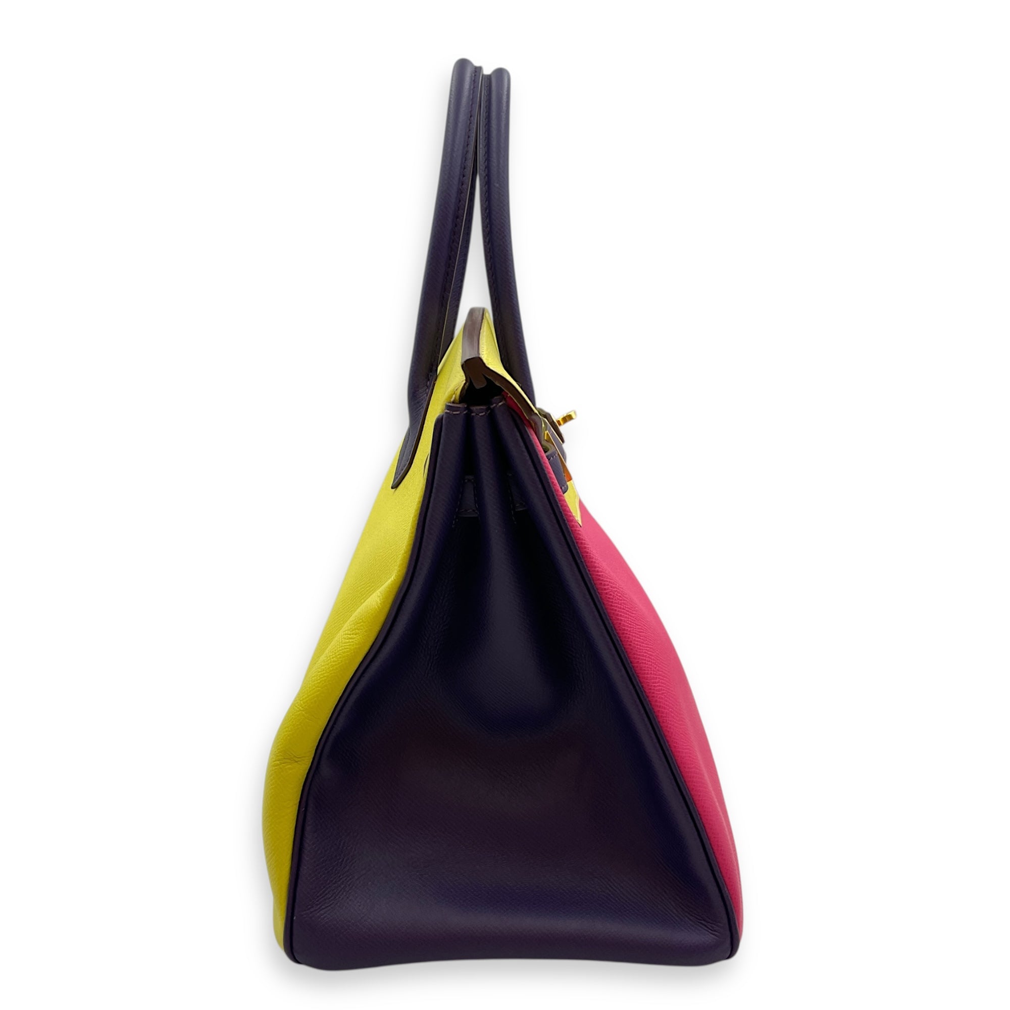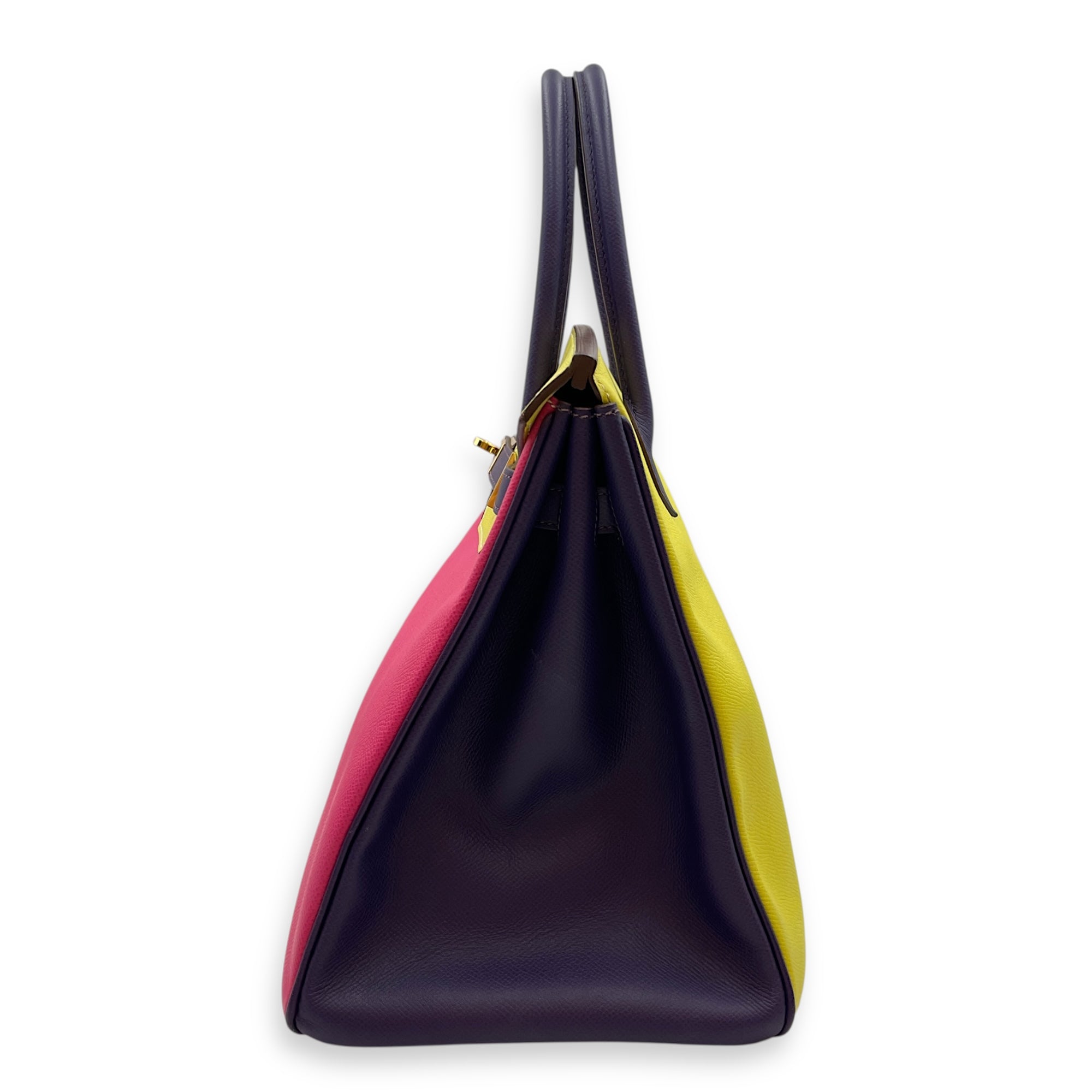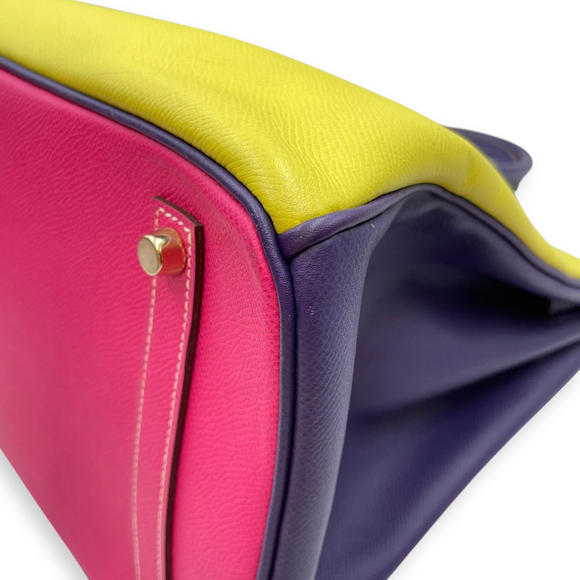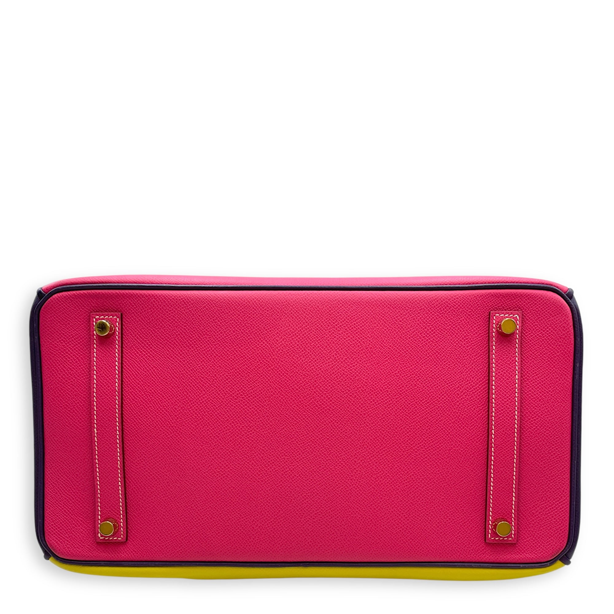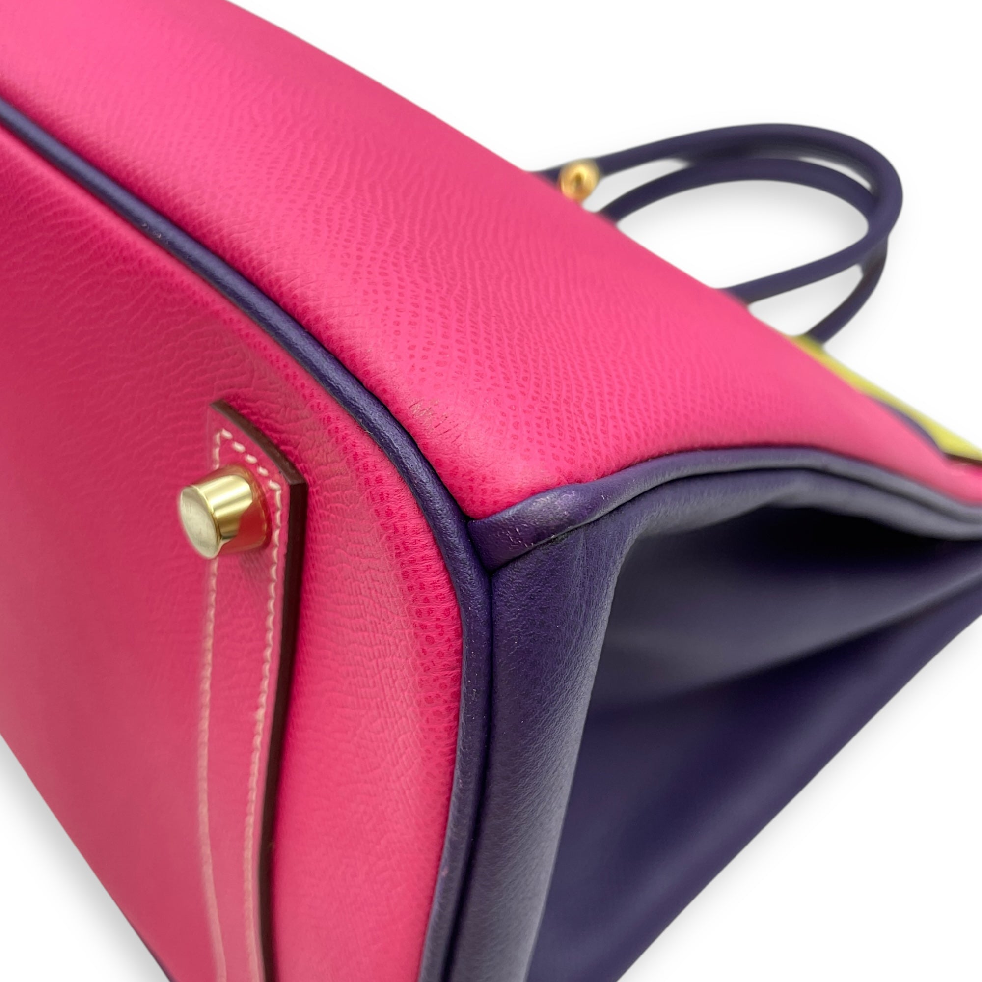 HSS Birkin 35 Rose Tyrien/Lime/Iris in Epsom, Gold hardware