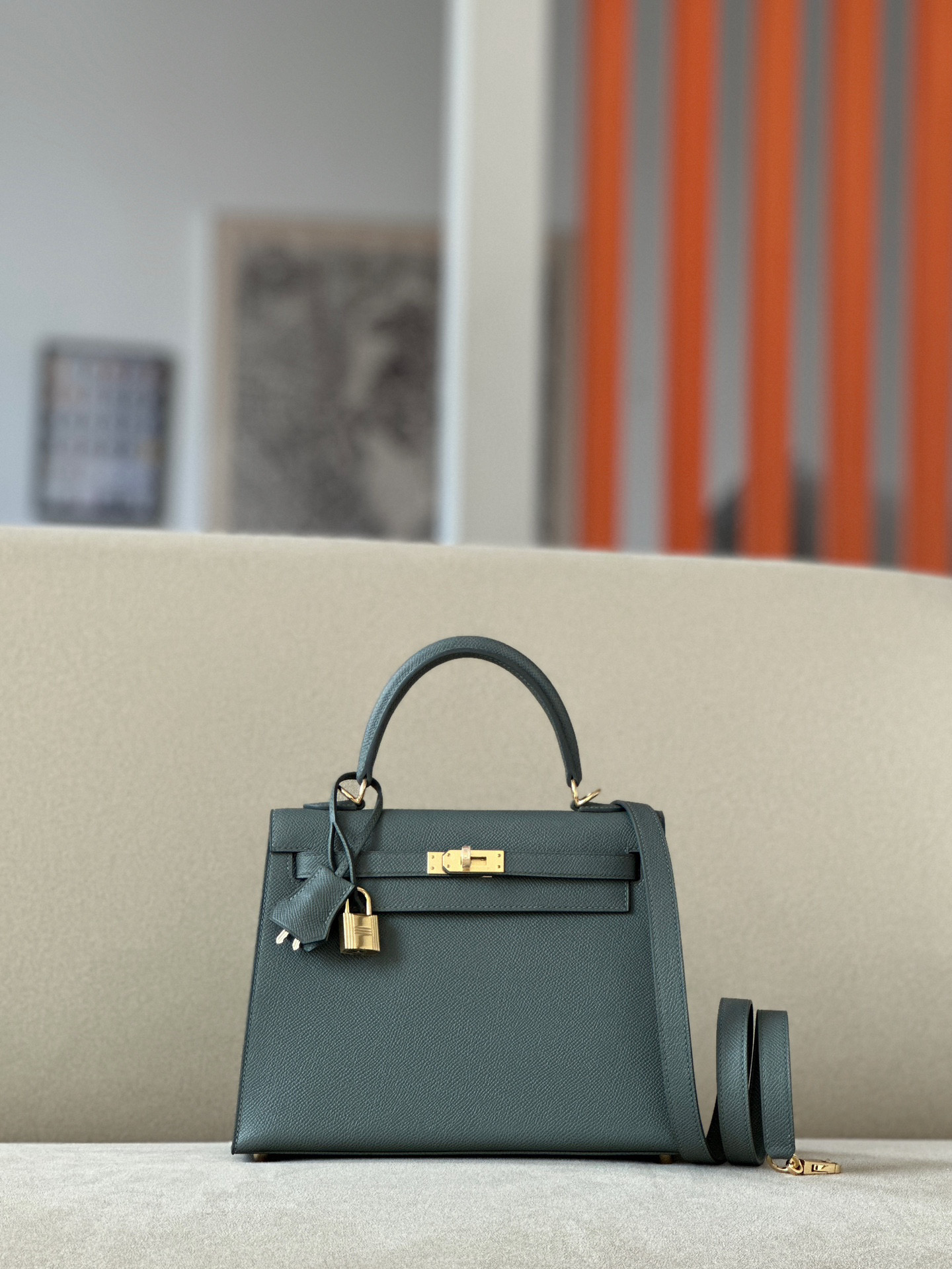 Be the first to review “Kelly 25 Epsom Vert Amande (63) Gold Hardware”