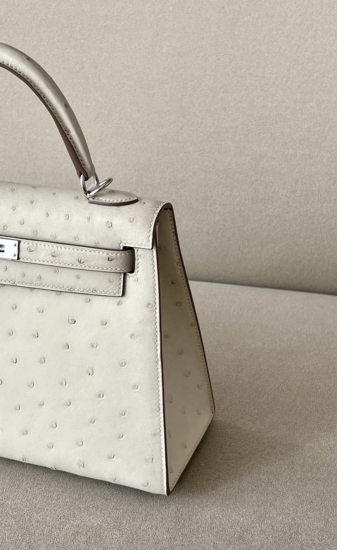 Be the first to review “Kelly 25 Ostrich Parchemin (3C) Palladium Hardware”