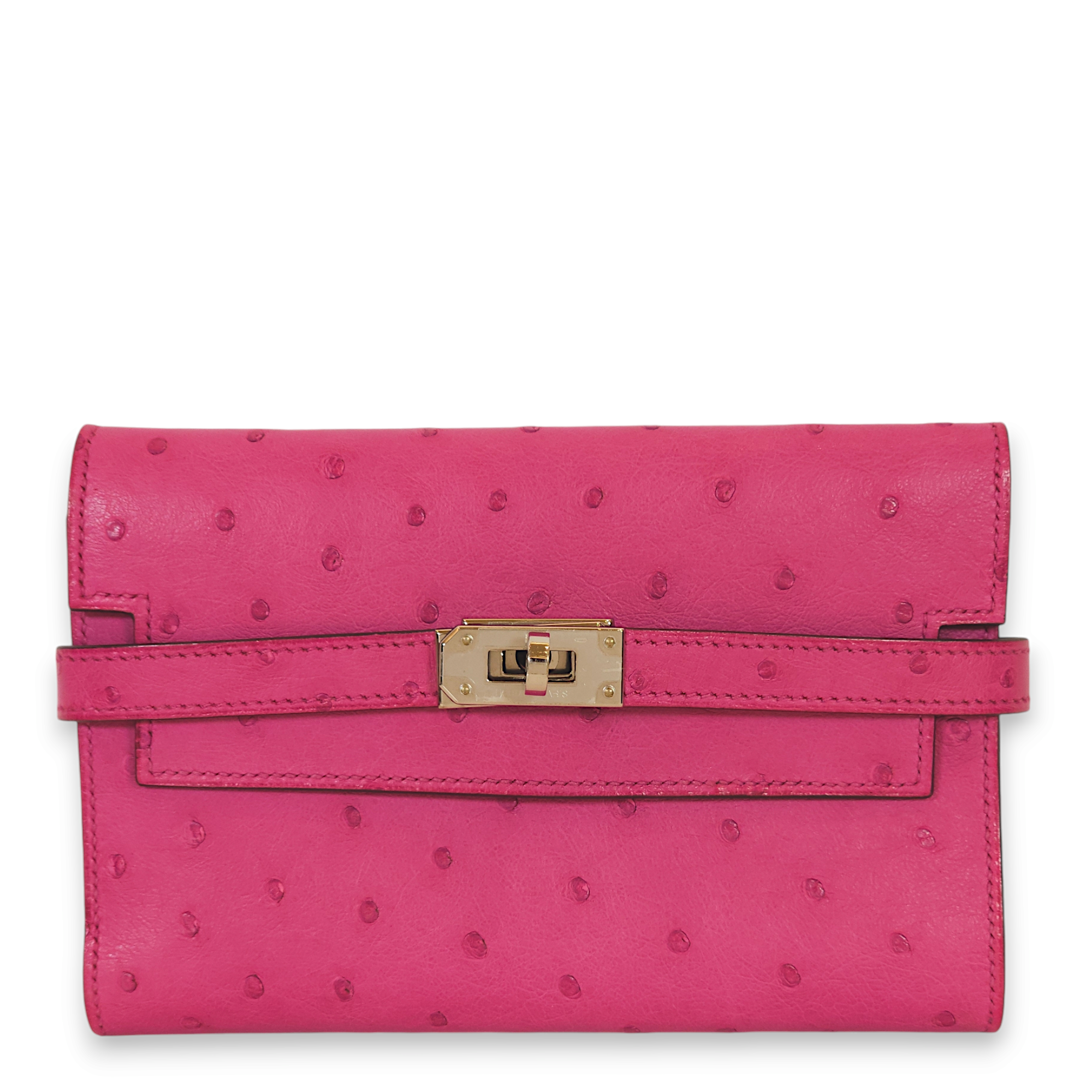Kelly Depliant Rose Pourpre Wallet in Ostrich, Palladium hardware